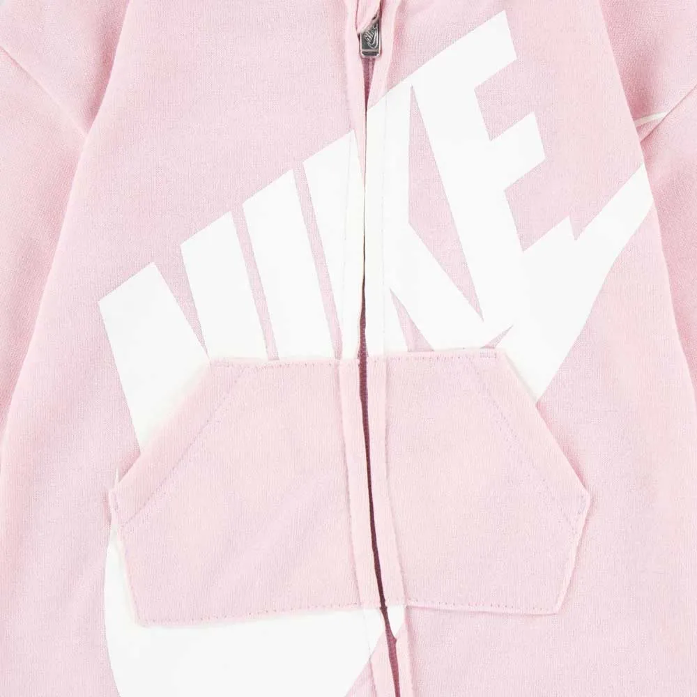 Denne heldragt fra Nike er en nem måde at klæde de mindste på til hverdagen. Den er lavet af blødt, genanvendt poly French Terry-stof for bæredygtighed og har et stort Futura-logoprint på forsiden. Den har en hyggelig hætte, sænkede skuldre for en afslappet pasform, og den fulde lynlåslukning gør det nemt at skifte, klæde på og tilføje lag. Det, der gør denne heldragt anderledes end de andre, er de forlængelige manchetter, der vokser med dit barn for en længere brugstid.