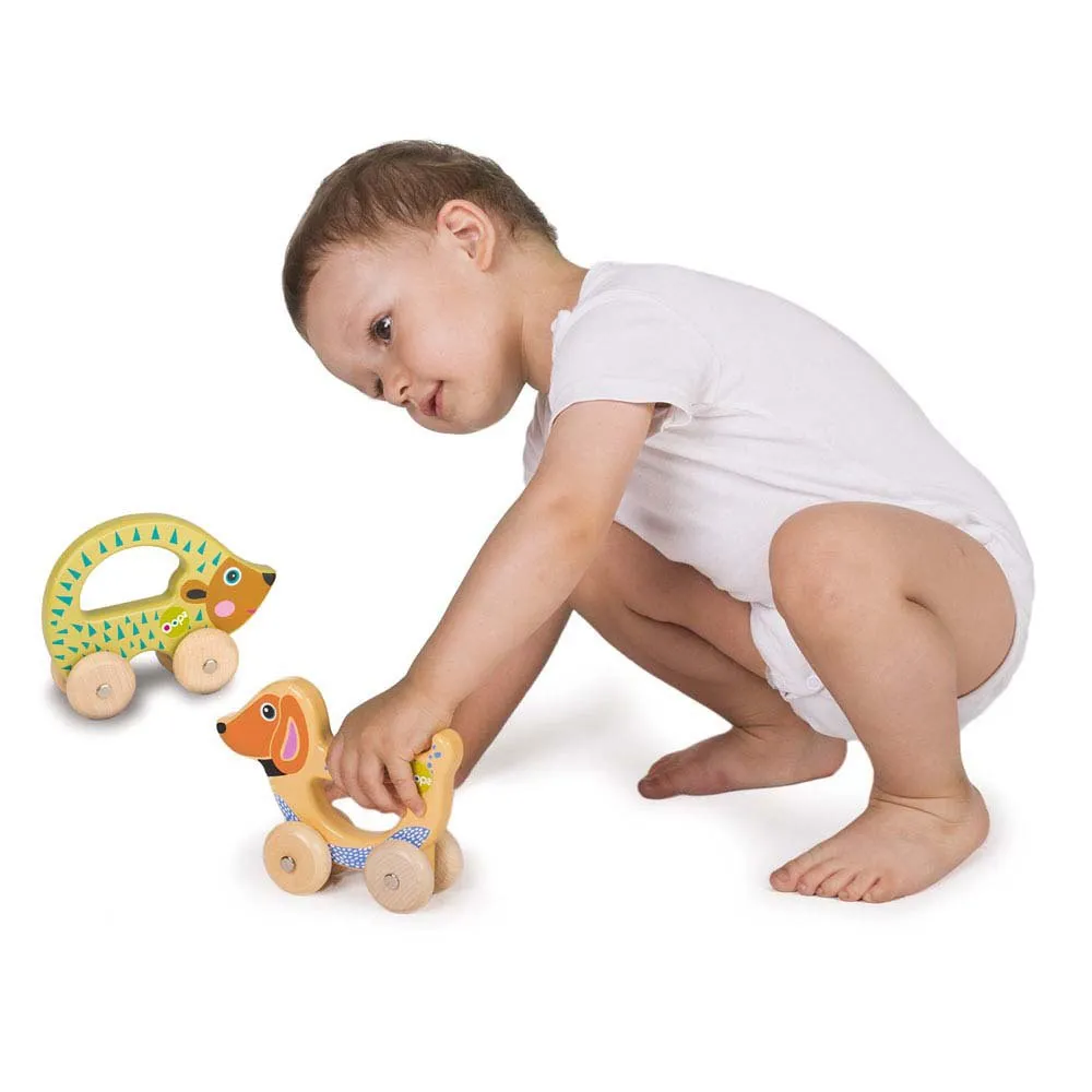 Dyr med klæbrige hjul, så babyen kan more sig med at trække dem langs enhver overflade.