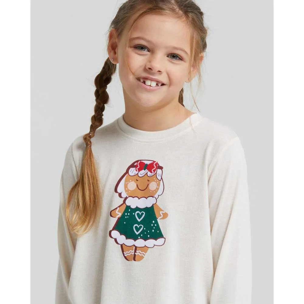 Sættet består af en charmerende langærmet trøje parret med lange bukser, der giver fuld dækning og varme. Trøjen, lavet af usædvanligt blød viskose, føles skånsom og glat mod huden, forhindrer irritation og sikrer en fredelig nattesøvn. Den er designet med en klassisk rund hals for en ikke-begrænsende pasform og viser et flot print med et muntert juletema, der øjeblikkeligt bringer sæsonens ånd ind i hendes sengetidsrutine. Denne dejlige top er perfekt til familiebilleder ved juletræet og tilføjer et strejf af festlig sjov til hendes garderobe.
