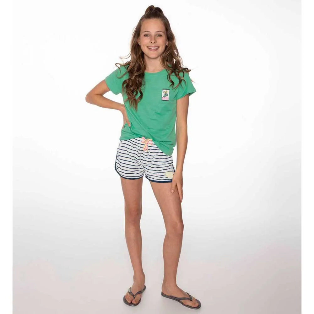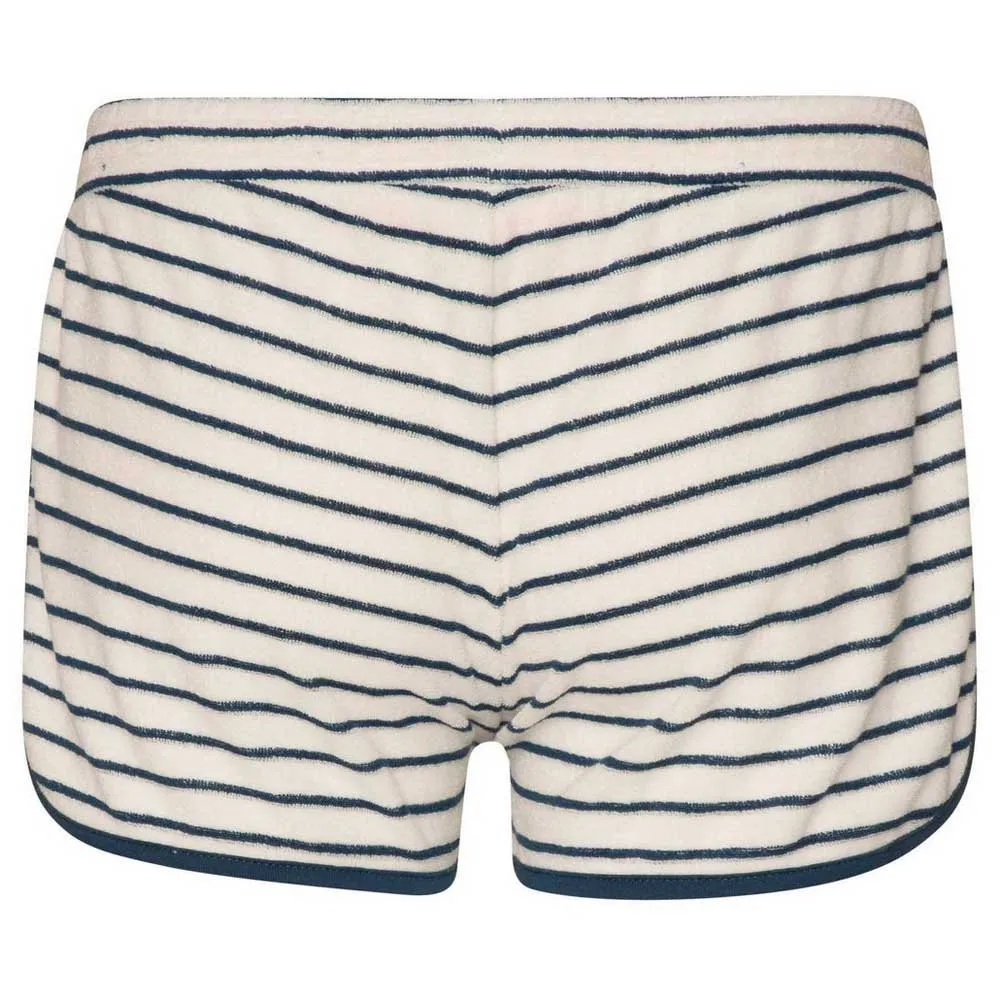 Mød den fantastiske Dina JR by Protest. Disse shorts er lette og superkomfortable lavet af et bomuldsblandet terry håndklædestof. Stoffet har en garnfarvet stribe, hvilket betyder at striben strikkes i selve stoffet. Taljebåndet er elastisk, og der er en snor i taljen. Der er også sidelommer. Den perfekte shorts til denne sommer, Dina JR fra Protest.