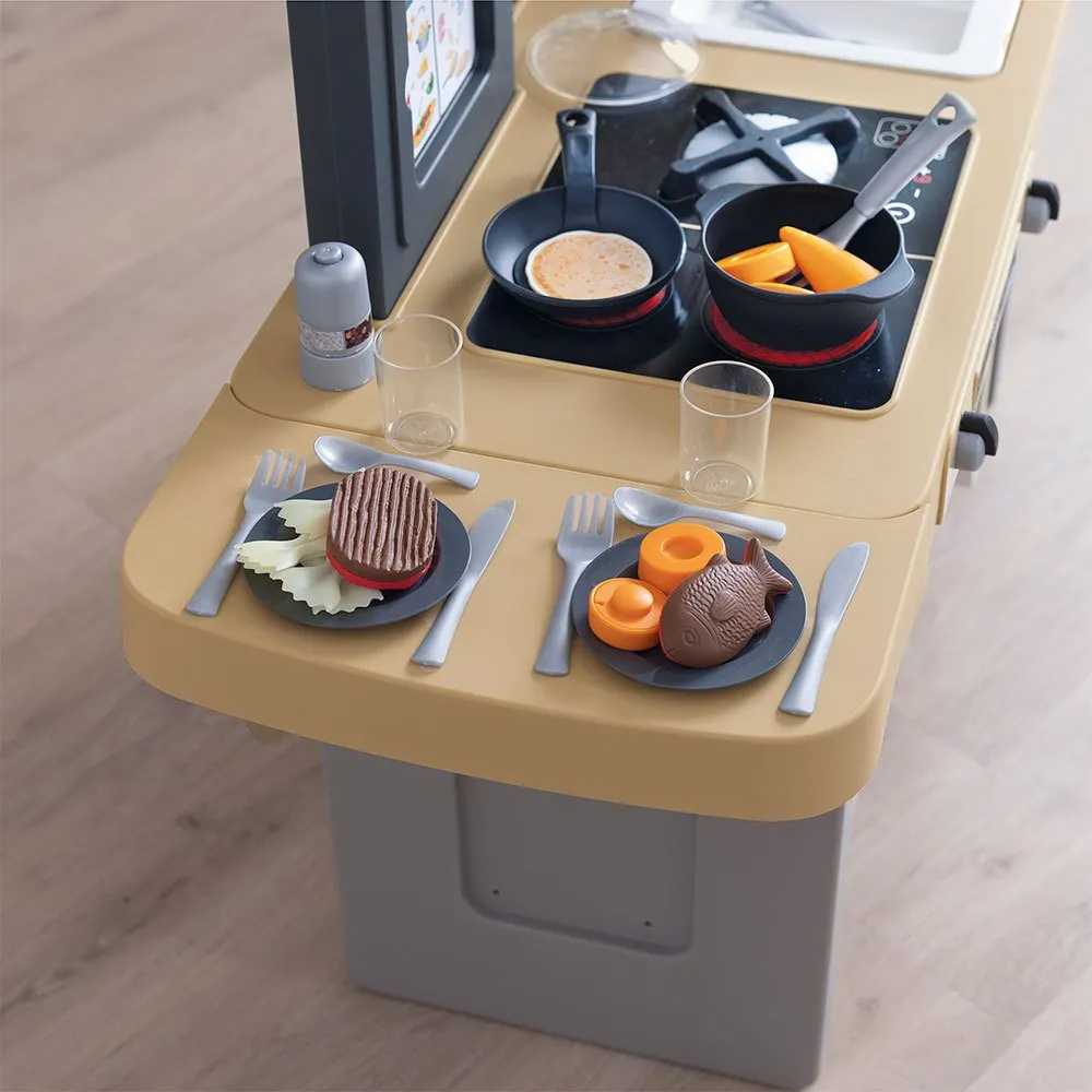 Det højkvalitets Tefal Evo legekøkken med sit store udvalg af tilbehør, elegante design og realistiske funktioner giver masser af plads til kreativitet og fantasi.