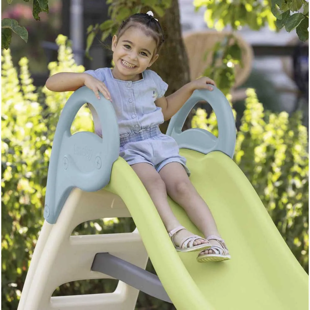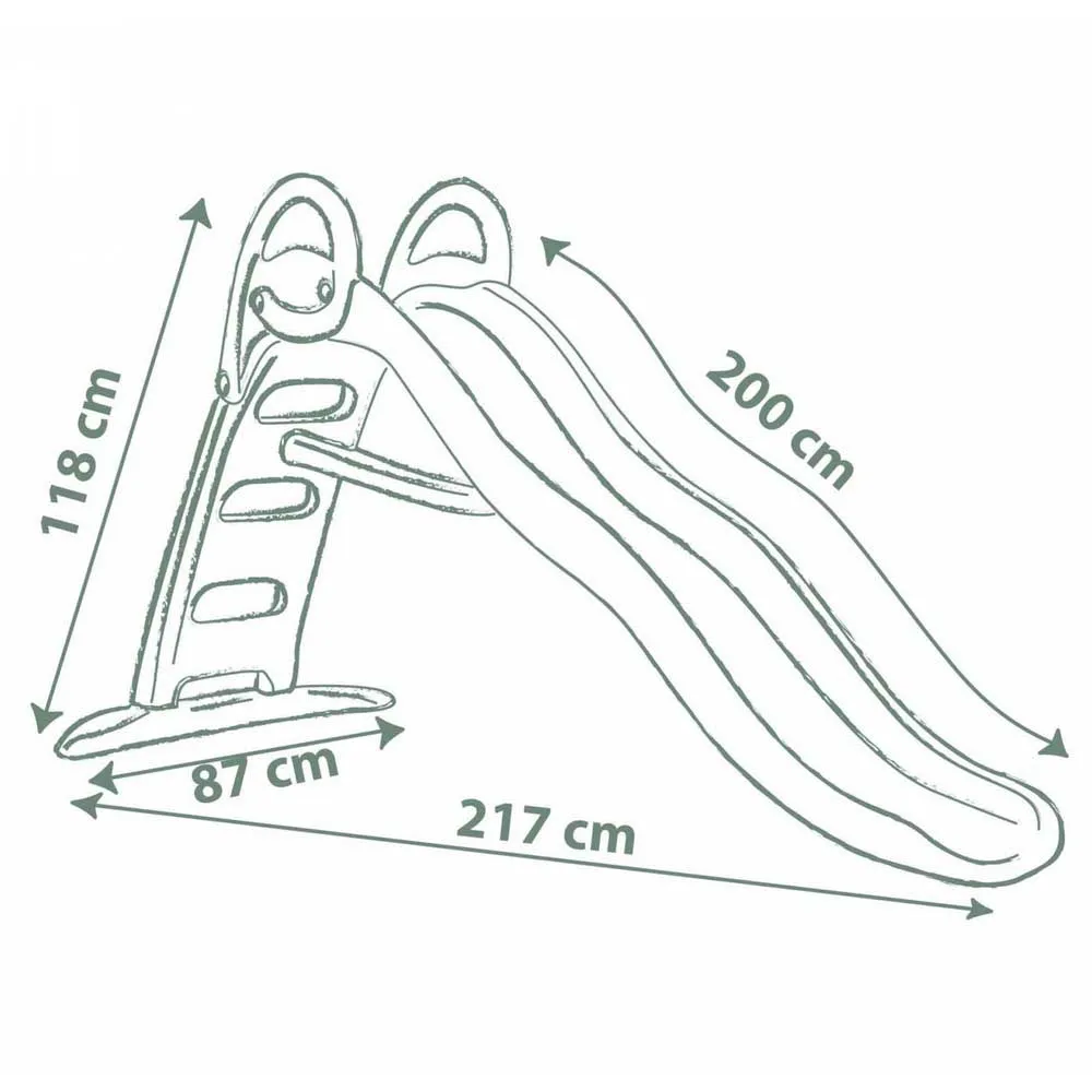 Smoby Life Funny Wave Rutsjebanen, fremstillet af mindst 80% genanvendt plastik, tilbyder sikker rutsjebane sjov for børn i alderen to år og opefter. Den bølgeformede haverutsjebane imponerer ikke kun med sit farverige design og 200 cm rutsjelængde, men har også en helt særlig ekstra funktion: en vandtilslutning til haveslangen! Dette forvandler Funny til en vandrutsjebane på ingen tid. Dette garanterer dobbelt så meget sjov, især på varme sommerdage. Den brede rutsjebanebane sikrer bløde landinger. Stigen er særligt sikker og stabil takket være dens gelænder, ergonomiske håndtag, brede base og skridsikre trin. Rutsjebanen er meget nem at samle og kan lige så hurtigt og nemt skilles ad for praktisk opbevaring. Sidst men ikke mindst imponerer Funny børnerutsjebanen med sin UV-stabile plastik, som gør den særligt modstandsdygtig over for vejr og vind samt falmning.