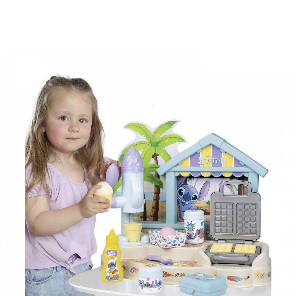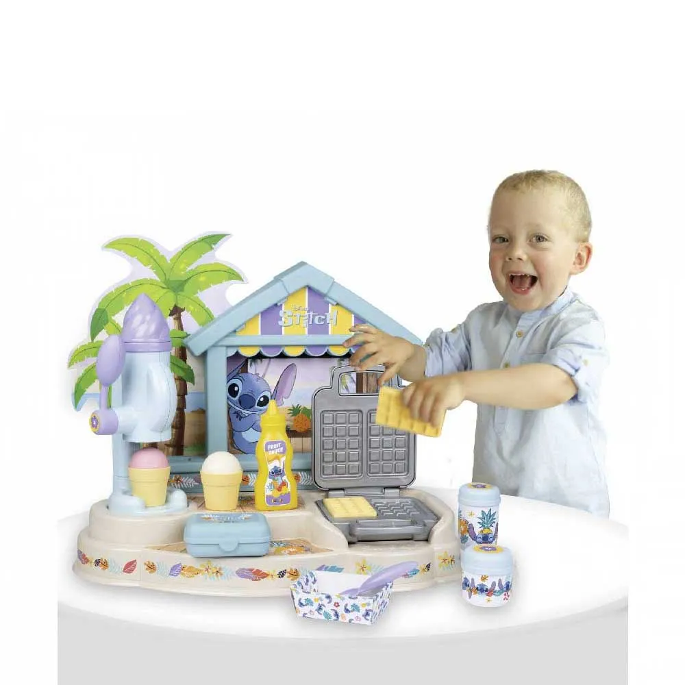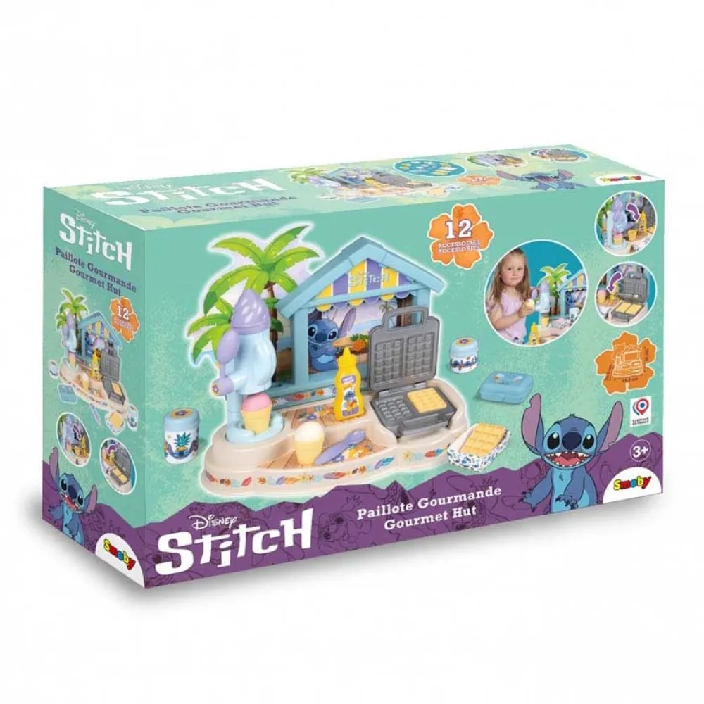 Forkæl dine venner med dit Stitch Gourmet-hus. Med dets 12 tilbehørsdele, magiske ismaskine og vaffeljern kan du invitere dine venner over til en is, eller endda lave lækre vafler og tilføje toppings ved hjælp af de forskellige flasker.