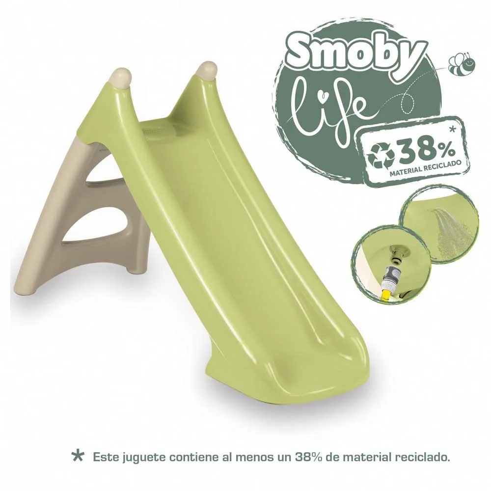 Fantastisk glideoplevelse for de små. Den robuste XS rutsjebane fra Smoby, fremstillet af mindst 30% genanvendt plastik, er ikke kun sjov for de små med sin 90 cm lange rutsjebane, men også særligt sikker takket være de skridsikre trin. Den har en særlig ekstra funktion i form af en vandtilslutning til en haveslange, der forvandler den til en vandrutsjebane på ingen tid. Dette garanterer dobbelt så meget sjov. Det smarte produktdesign gør den nem at opbevare, da stigen let kan adskilles fra rutsjebanefladen og derefter opbevares i den.