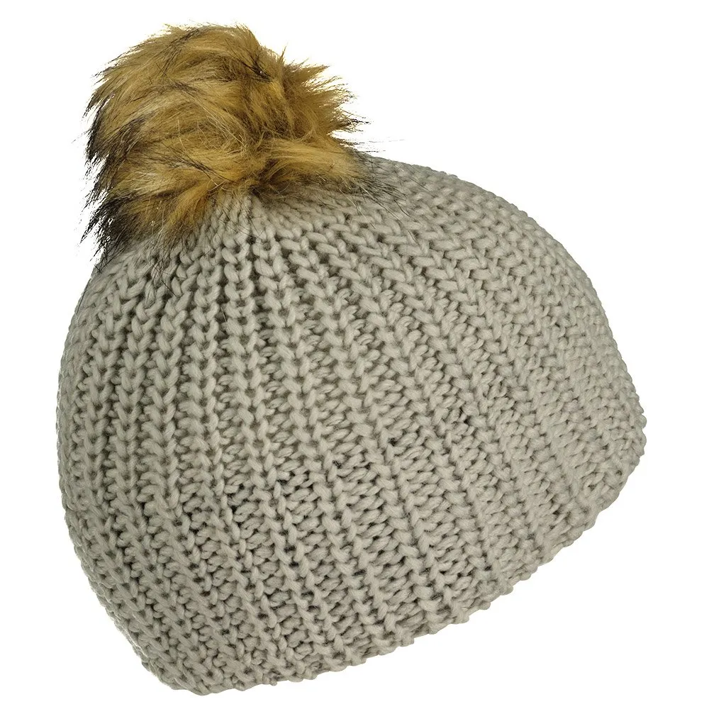 Toppet med en stor, stilfuld og fluffy pompon lavet af imiteret pels af høj kvalitet.