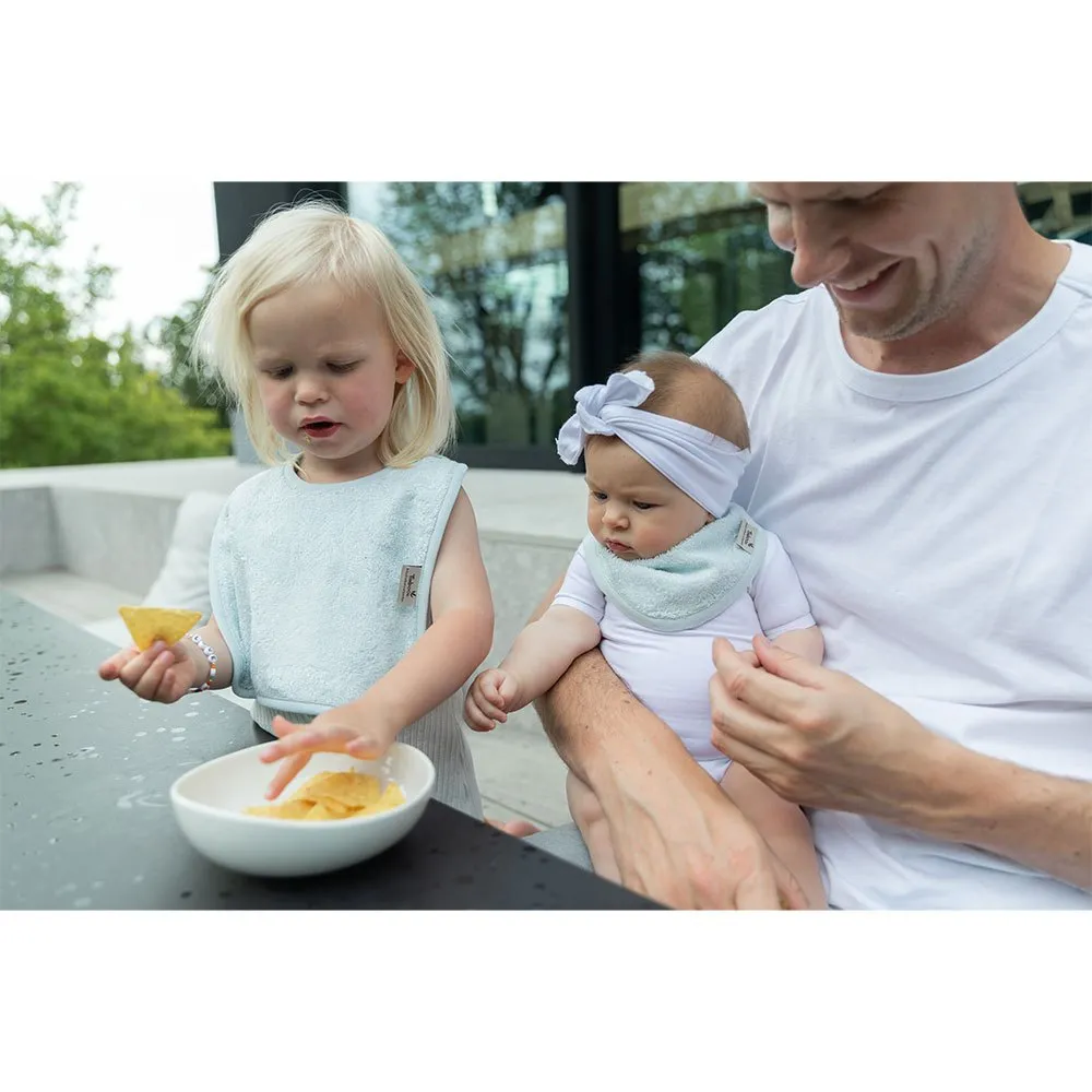 Baby-hagesmække er lavet af 90% bambus og 10% polyester.