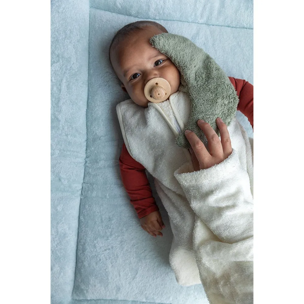 Babyen skal placeres på ryggen og den termiske pose på maven.