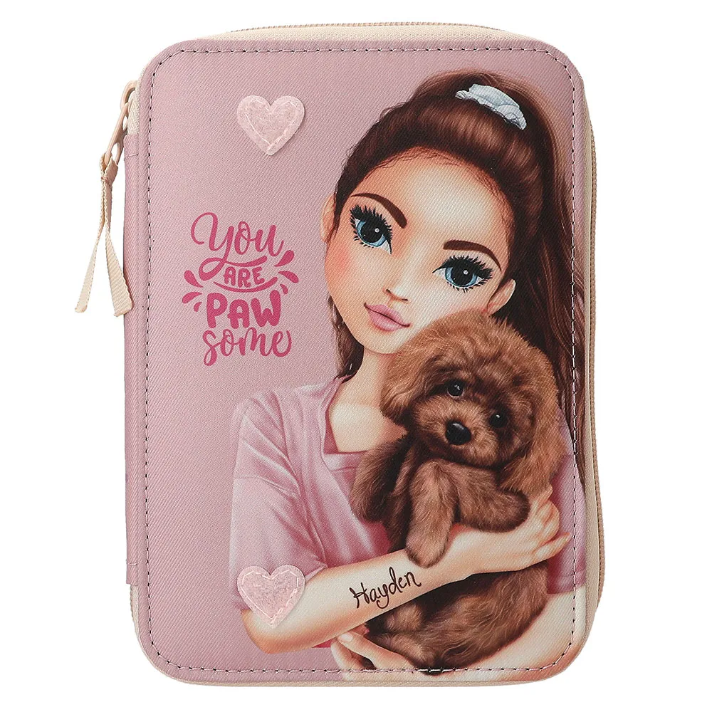Oplev den perfekte blanding af stil, organisering og bedårende charme med TOPMODEL Basic Duo Kitty And Doggy penalhuset. Et essentielt tilbehør til ethvert kreativt sind og organiseret studerende. Dette penalhus er designet til at holde dine skrive- og kunstmaterialer pæne, samtidig med at det fremviser et blændende design, der helt sikkert vil vende hoveder i klasseværelset og videre. Det er mere end bare et sted at opbevare dine kuglepenne; det er en modeerklæring, der hylder venskab, sjov og den elskede TOPMODEL-verden.