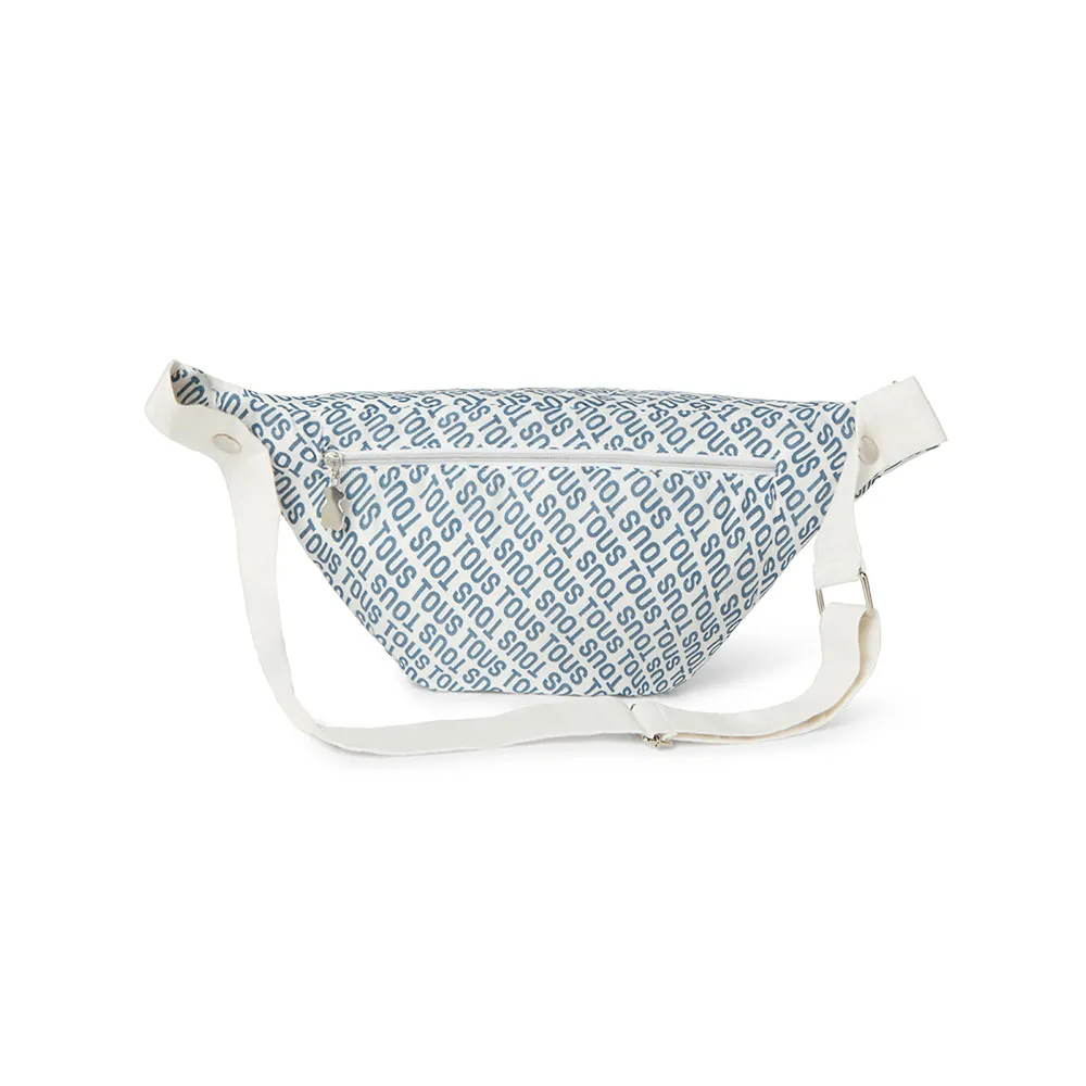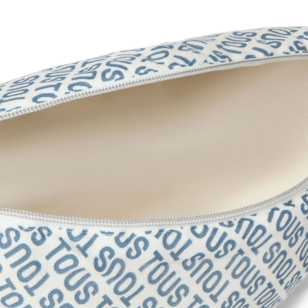 Tous Baby pusletaske i blød muslinbomuld trykt med TOUS-logo og teknisk stof interiør.