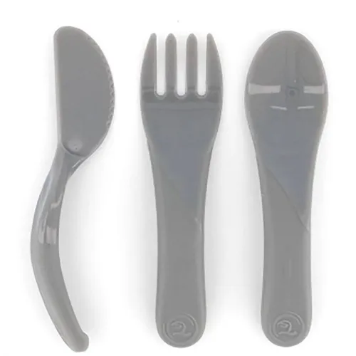 Komfortabelt kort og nemt spise-på-selv bestik, til dit barn, når de begynder at spise ved spisebordet. Bestikket har en blød overflade og en ergonomisk finish, der giver dit barn et fastere greb. Fri for BPA. Så skal de have en god start med at lære at spise med kort, let og behageligt bestik. Twistshakes spise-på-din-egen bestik har korte hanke, perfekt konfigureret til spædbørns hænder. Med en blød overflade er bestikket designet til at ligge fast i dit barns hænder. Alle stykkerne har en brugbar kant på enden af håndtaget, for at forhindre dem i at falde ned i maden. Ergonomisk og som altid fri for BPA.