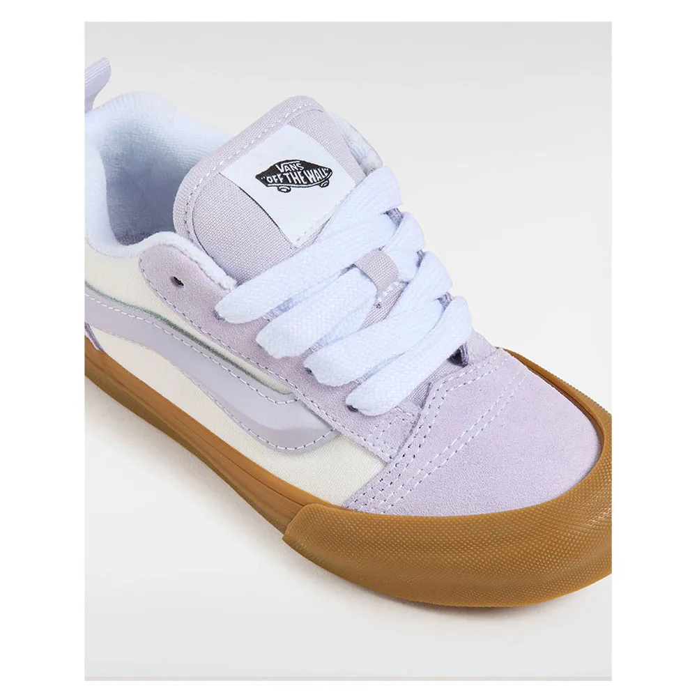 Udstyr din unge trendsætter med Vans Knu Skool Youth Trainers, en frisk, chunky fortolkning af den ikoniske Old Skool. Disse sneakers er bygget til aktive børn og har en slidstærk læderoverdel, en forstærket tåkappe og den karakteristiske Vans vaffelsål for overlegent greb. Den overdrevne, polstrede æstetik giver enestående stil, mens den polstrede pløs og krave sikrer komfort hele dagen til legepladsens eventyr. Med et lavt snit for mobilitet og sikker snøring er disse unisex-trænere den perfekte blanding af dristig mode og hverdagsfunktion til børn, der ønsker at skille sig ud