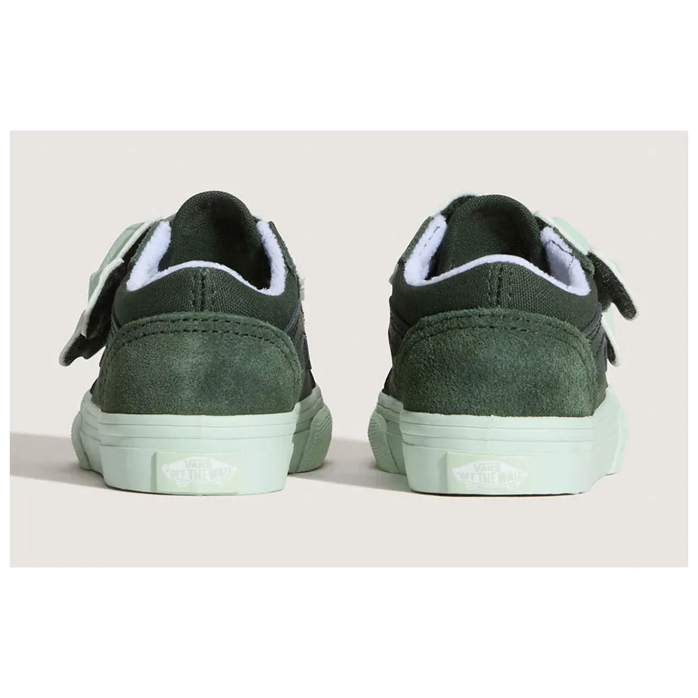 Old Skool V Bolt Strap er skabt til eventyr. Sig farvel til besværet med snørebånd med de smarte og sikre dobbelte velcroremme. Dette intuitive design giver børn uafhængighed, muliggør hurtig og nem af- og påtagning, samtidig med at det sikrer en tætsiddende og justerbar pasform, der holder trit med non-stop action. Uanset om de er på vej til klasseværelset, skateparken eller legepladsen, giver disse sneakers et pålideligt og behageligt fundament for alle deres aktiviteter. Den lavtskårne profil giver fremragende bevægelsesfrihed til anklen, hvilket er essentielt for at løbe, hoppe og mestre nye tricks.