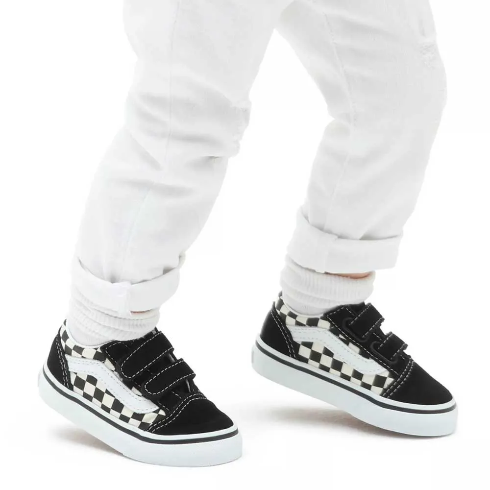 Disse pigers lave snøresko med velcrolukning er et must-have for enhver stilfuld småbarn. Det klassiske design, kombineret med de praktiske funktioner og den holdbare konstruktion, gør dem til en glimrende investering for forældre, der ønsker det bedste for deres børns fødder. Giv din lille en selvtillid til at udforske verden med stil med VANS Old Skool V Toddler sneakers. De vil elske komforten, og du vil elske det tidløse udseende. Bestil dit par i dag, og lad eventyrene begynde!