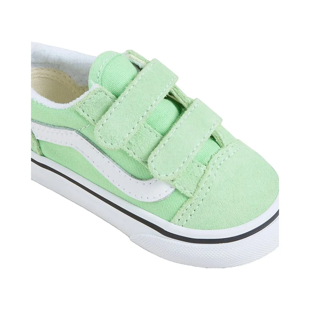 Disse pigers lave snøresko med velcrolukning er et must-have for enhver stilfuld småbarn. Det klassiske design, kombineret med de praktiske funktioner og den holdbare konstruktion, gør dem til en glimrende investering for forældre, der ønsker det bedste for deres børns fødder. Giv din lille en selvtillid til at udforske verden med stil med VANS Old Skool V Toddler sneakers. De vil elske komforten, og du vil elske det tidløse udseende. Bestil dit par i dag, og lad eventyrene begynde!