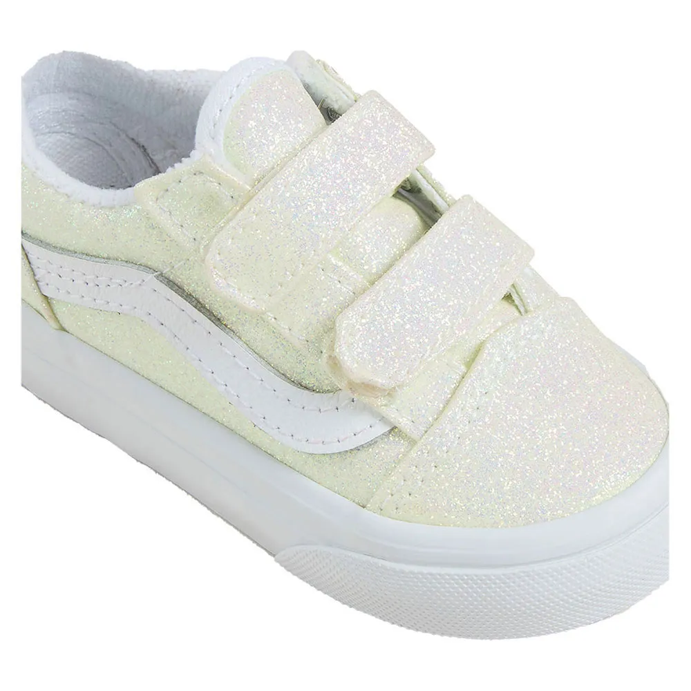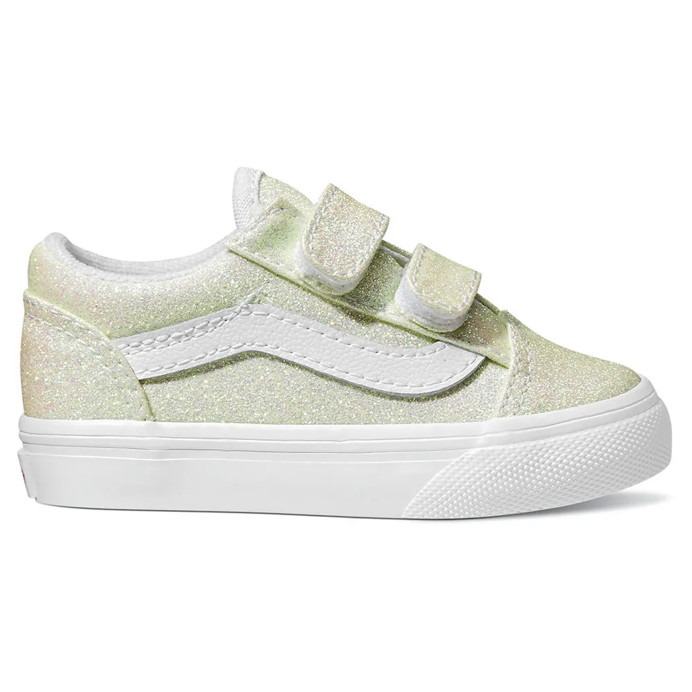 Disse pigers lave snøresko med velcrolukning er et must-have for enhver stilfuld småbarn. Det klassiske design, kombineret med de praktiske funktioner og den holdbare konstruktion, gør dem til en glimrende investering for forældre, der ønsker det bedste for deres børns fødder. Giv din lille en selvtillid til at udforske verden med stil med VANS Old Skool V Toddler sneakers. De vil elske komforten, og du vil elske det tidløse udseende. Bestil dit par i dag, og lad eventyrene begynde!