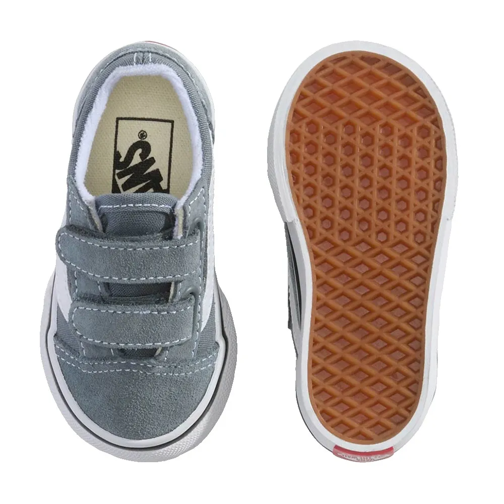 Introducer din lille til en legende med VANS Old Skool V. Disse ikoniske sneakers forener tidløs "Off The Wall"-stil med forældregodkendt praktisk anvendelighed. Dobbelt velcroremme giver børn selvstændighed med nem af- og påtagning, hvilket gør morgenerne til en leg. Bygget til leg, har de forstærkede tåkapper for holdbarhed, støttende polstrede kraver for komfort og den karakteristiske ydersål i gummi med vaffelmønster for overlegent greb. Den perfekte blanding af klassisk cool og hverdagsbekvemmelighed til den næste generation af eventyrere