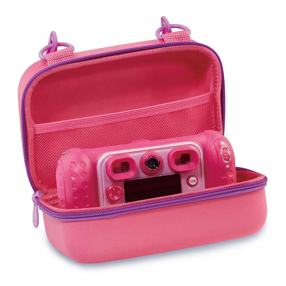 VTech Kidizoom kameratasken tilbyder mere end blot opbevaring. Den er designet med praktisk anvendelighed og sjov i tankerne, med dedikerede rum til kameraet, USB-kabel og andet tilbehør, så alt holdes organiseret og let tilgængeligt. Ingen mere fumlen efter forvildede hukommelseskort eller sammenfiltrede kabler! Det livlige og legesyge design øger spændingen og gør den til et must-have tilbehør for enhver ung fotograf.