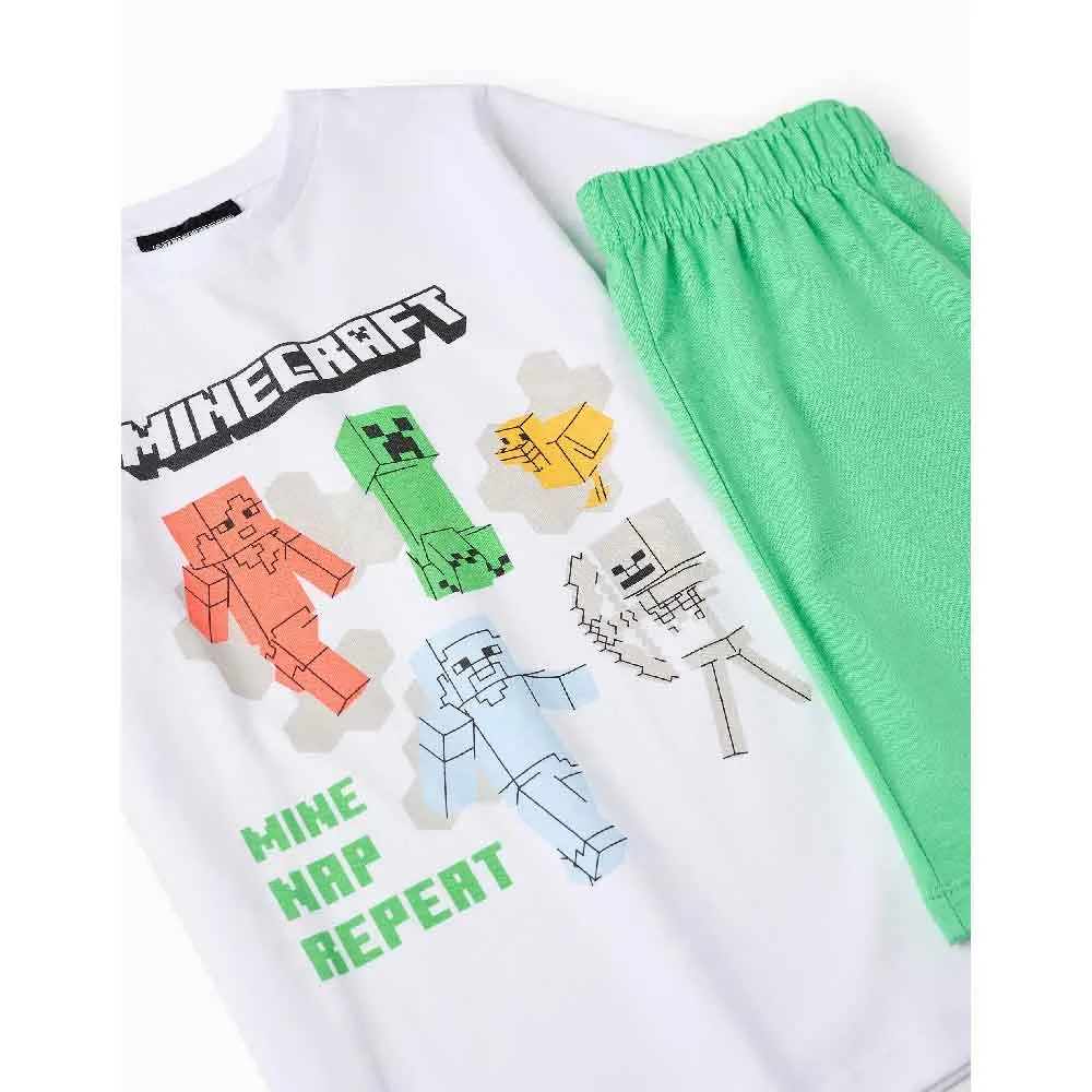 ZIPPY Drenge Minecraft Bomulds Pyjamassæt - Hvid & Grøn (3107147801)