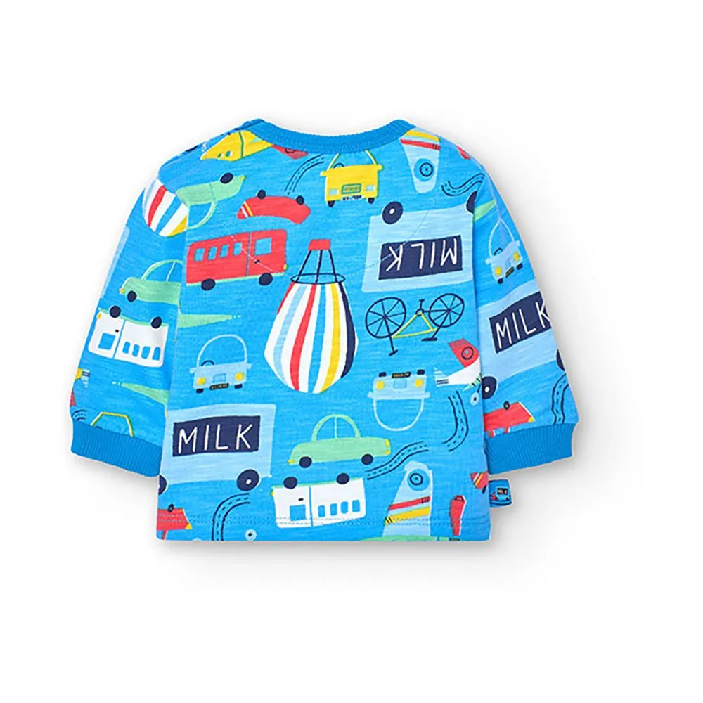 Dieser bedruckte Baby-Sweatshirt aus Plüsch ist ideal für neugeborene Jungen.