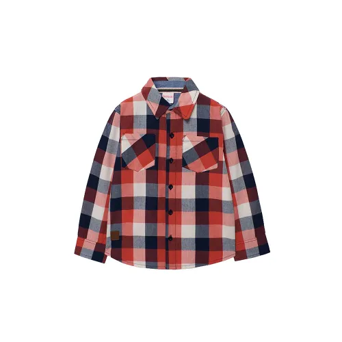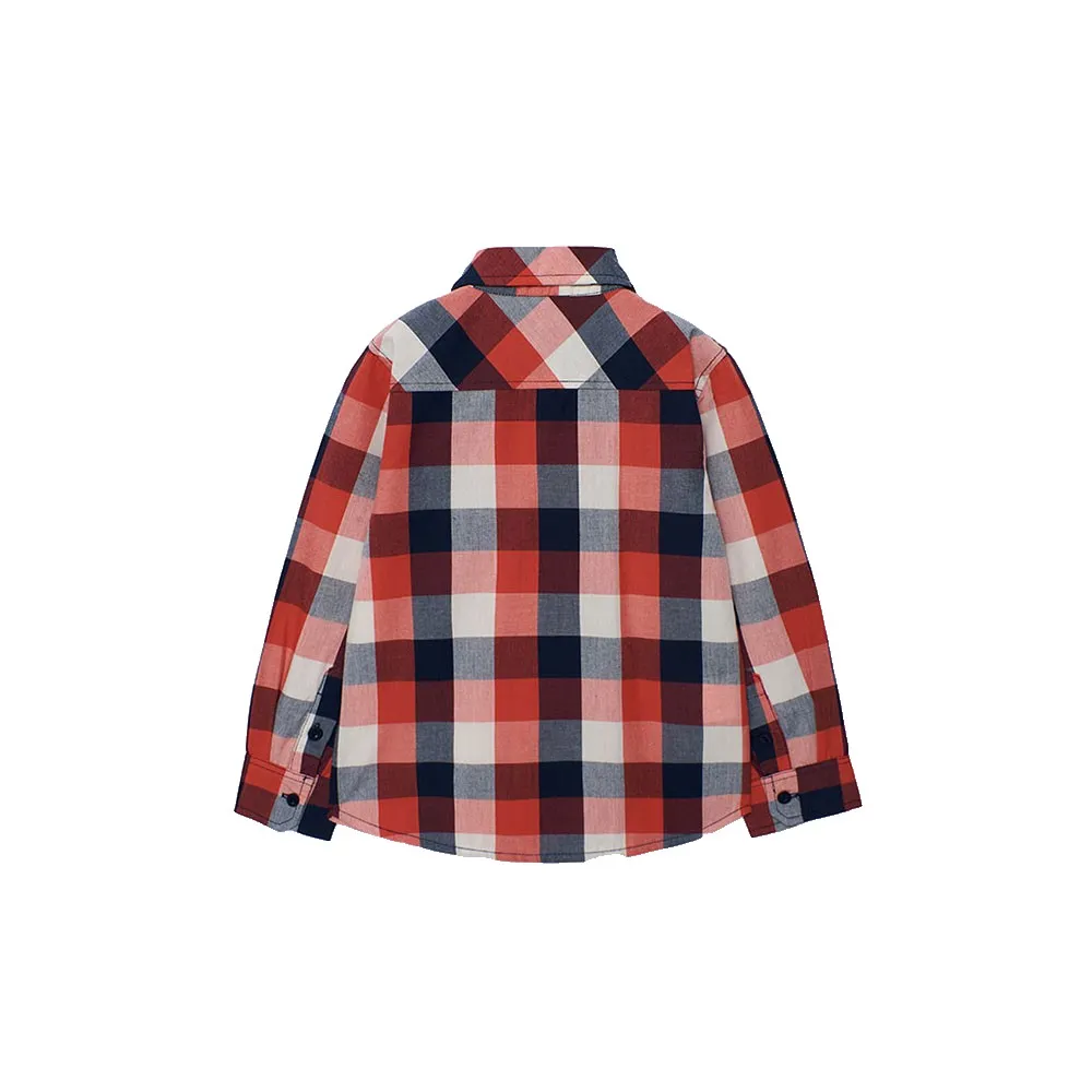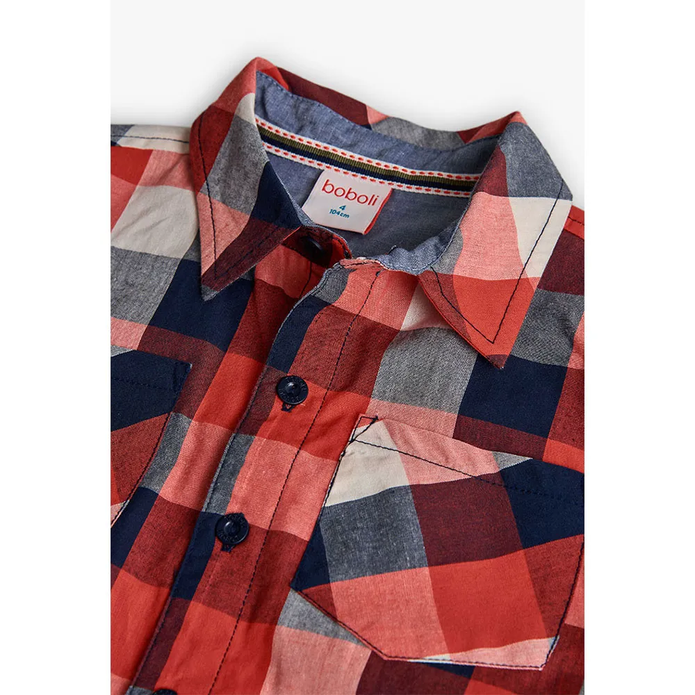 Jungenhemd mit klassischem Karomuster in Rot-, Marineblau- und Weißtönen, ideal für die Herbst- und Wintersaison.