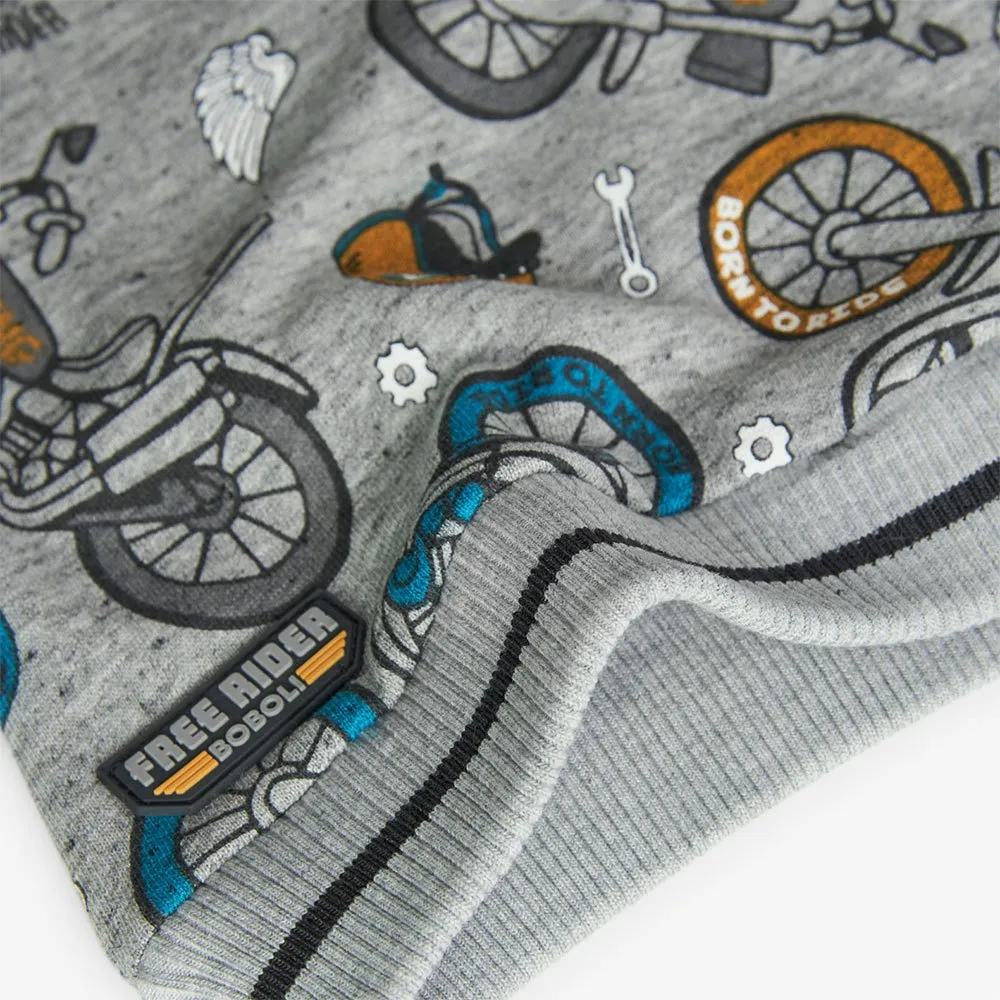 Sein Design zeichnet sich durch einen lustigen Motorraddruck aus, der perfekt für kleine Abenteurer ist.