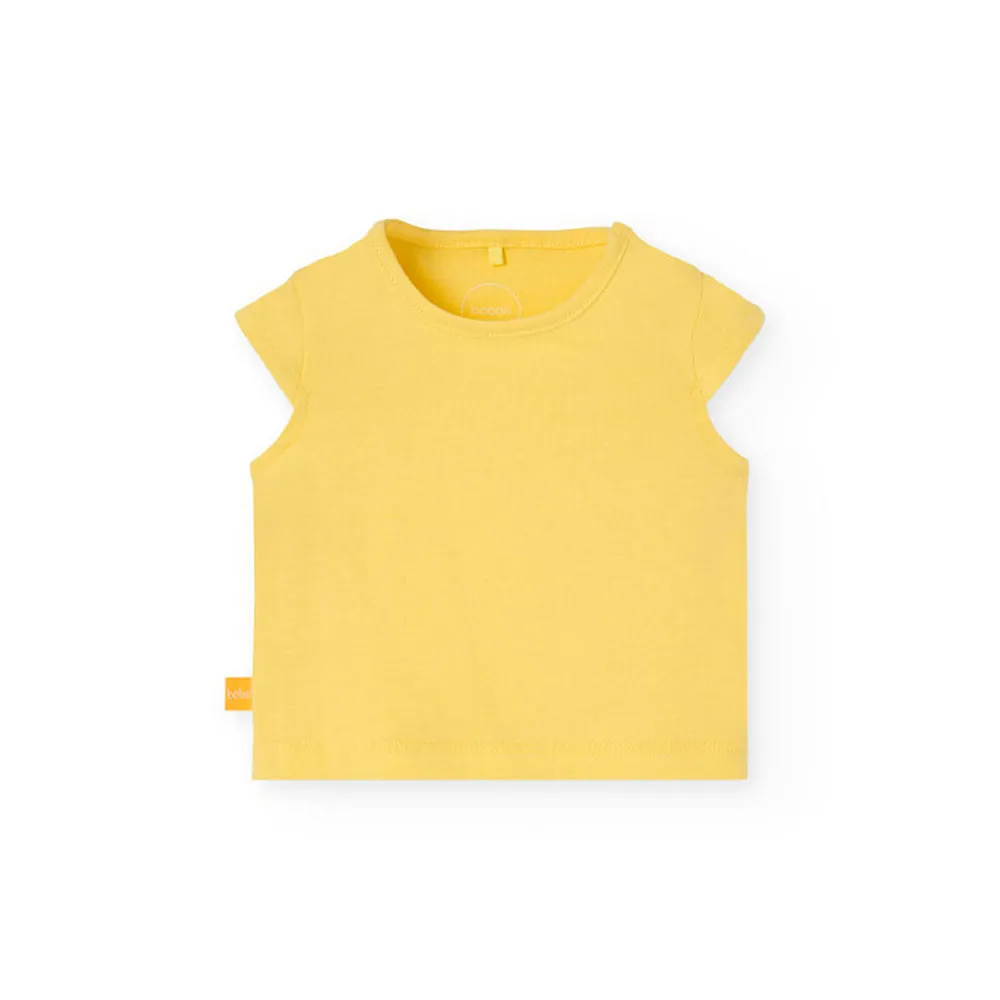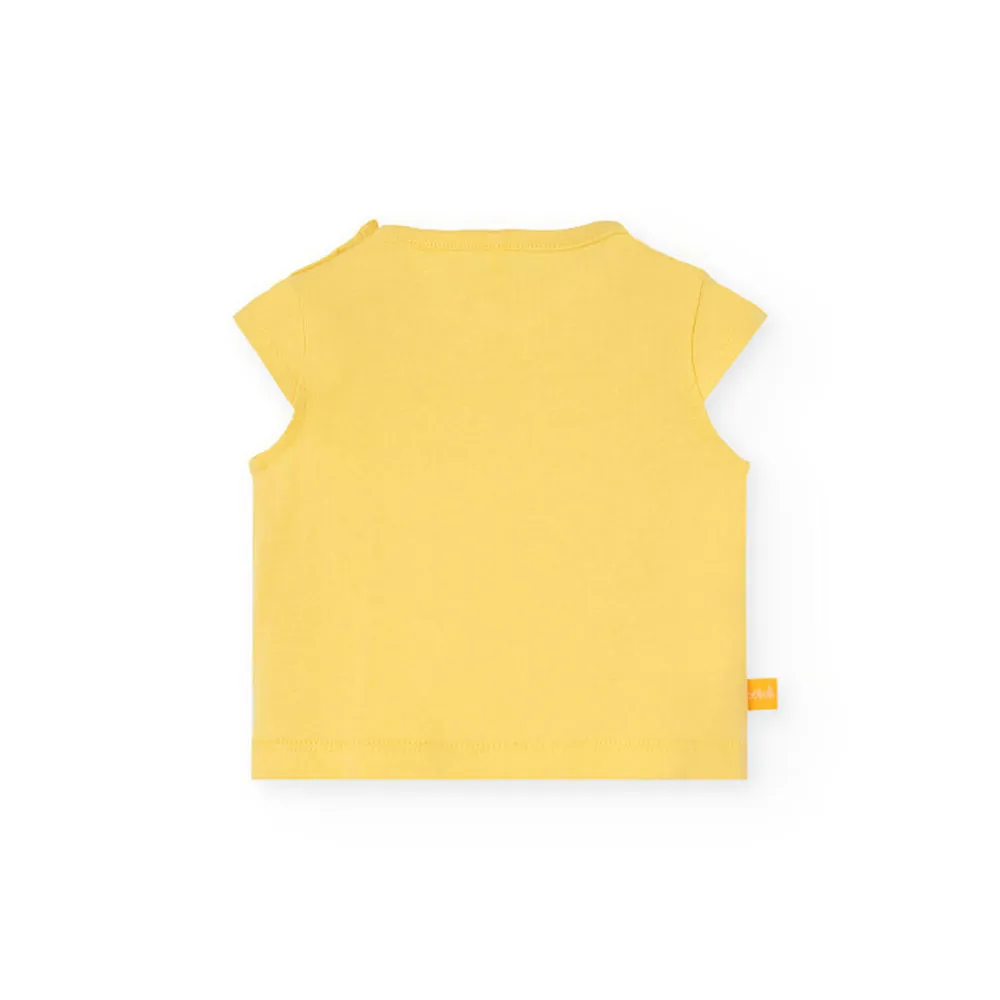 Das Shirt ist leuchtend gelb und sorgt für eine fröhliche und lustige Note.