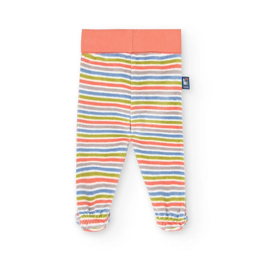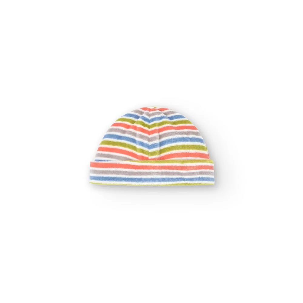 Sein Unisex-Design mit Streifen-Dekoration ist perfekt für jedes kleine Kind.