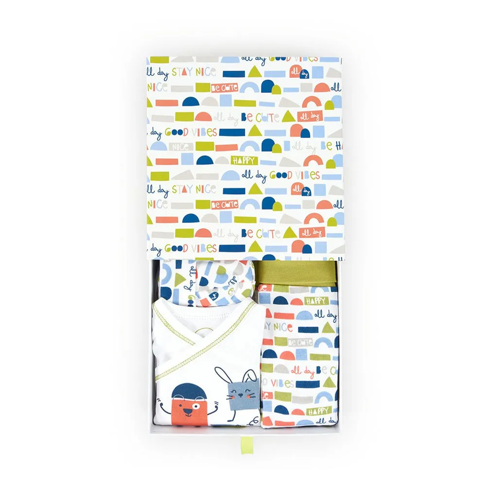 Dies ist ein unisex Baby-Strickset, ideal für Neugeborene.
