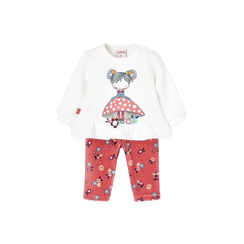 Babystrickset in elegantem Weiß, verziert mit zarten floralen Details, die eine frische und frühlingshafte Note verleihen.