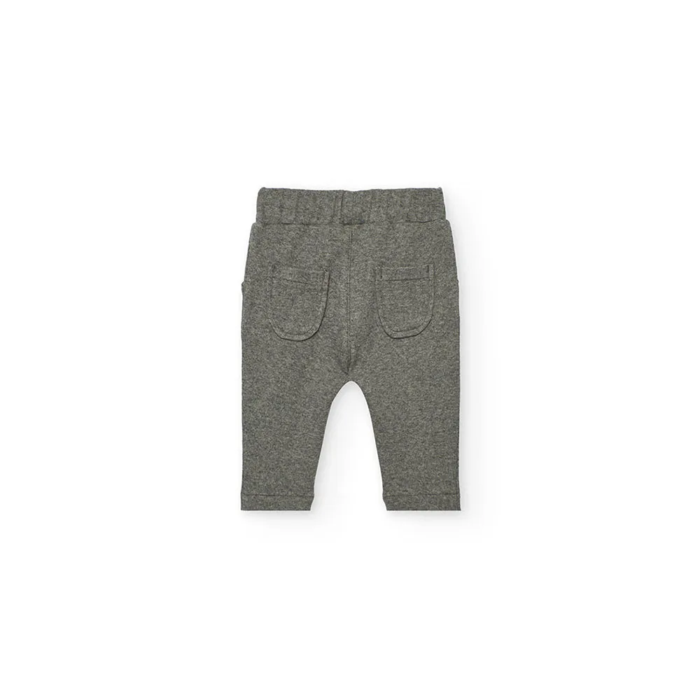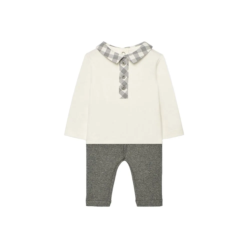 Graues Strickset für Babys, ideal für die kälteren Monate des Jahres, dank seines weichen und warmen Strickstoffes, der Komfort und Wärme gewährleistet.