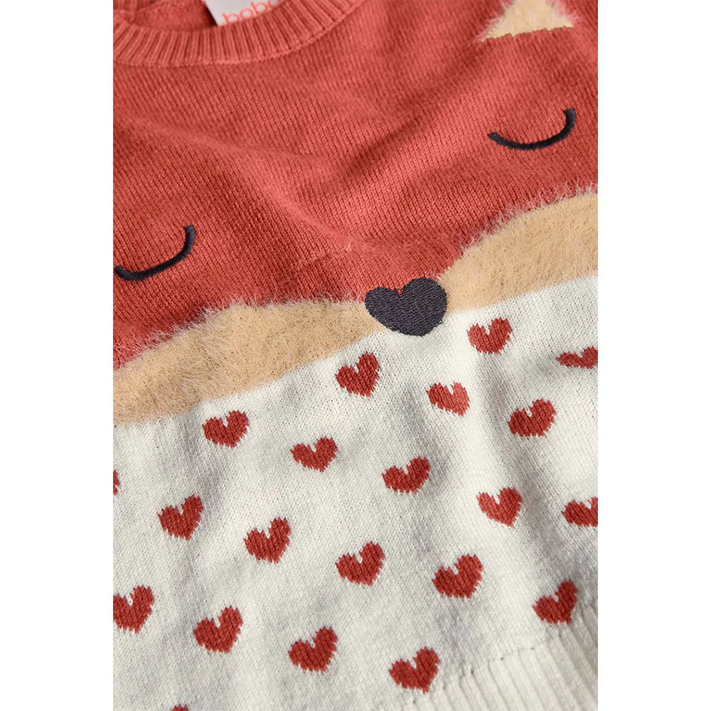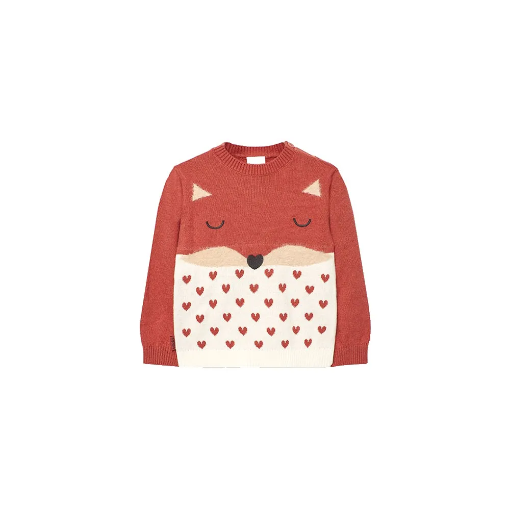 Gestrickter Pullover für Mädchen in Orange mit Tiermotiv, perfekt für die Herbst- und Wintersaison, der Wärme und Komfort bietet.