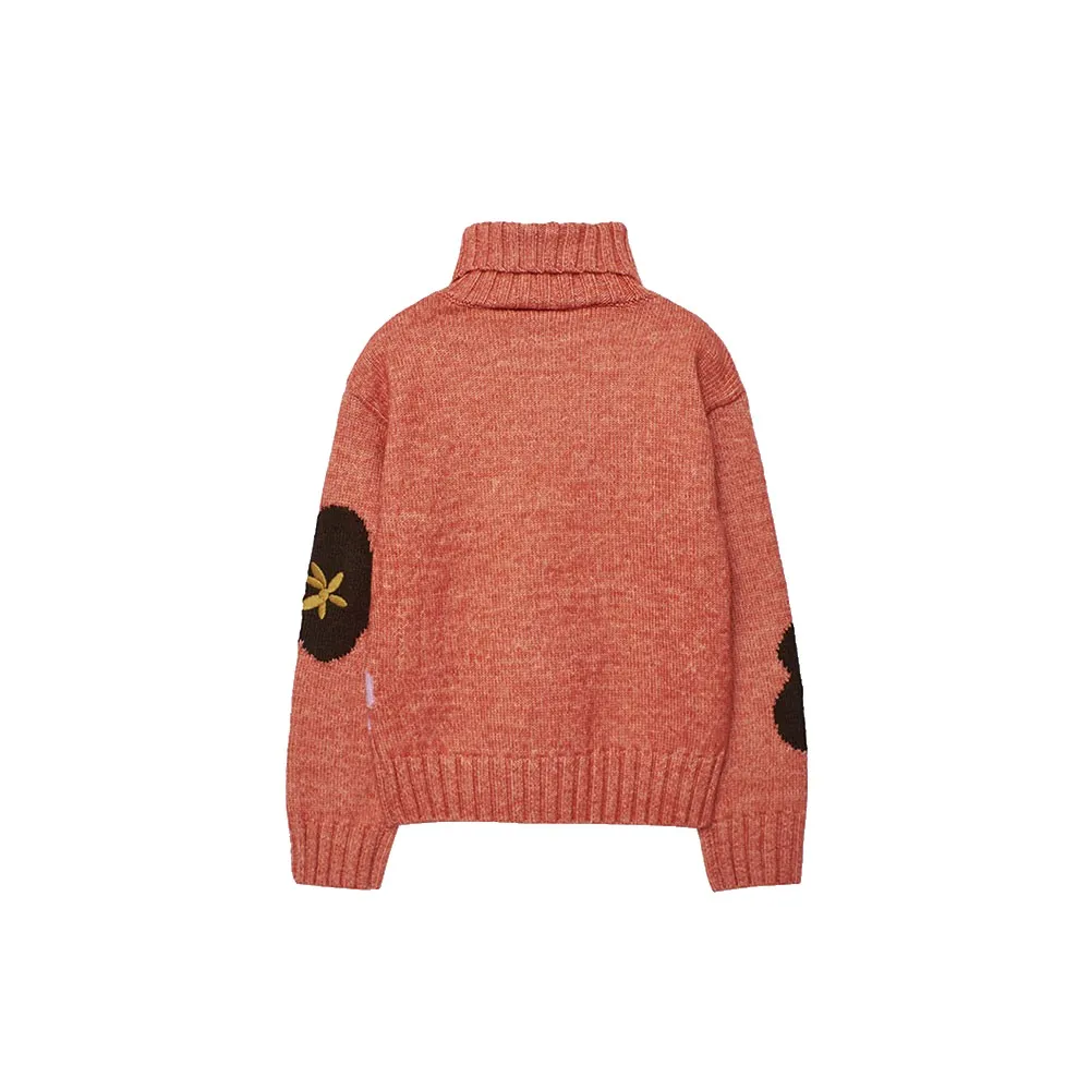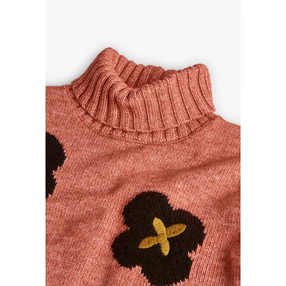 Gestrickter Pullover für Mädchen in Orange, entworfen, um Komfort und Wärme in den kälteren Jahreszeiten zu bieten.