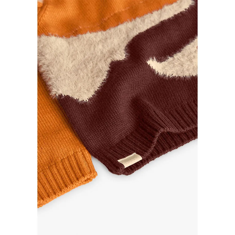 Brauner Strickpullover für Jungen, perfekt für kleine Abenteurer im Herbst und Winter.