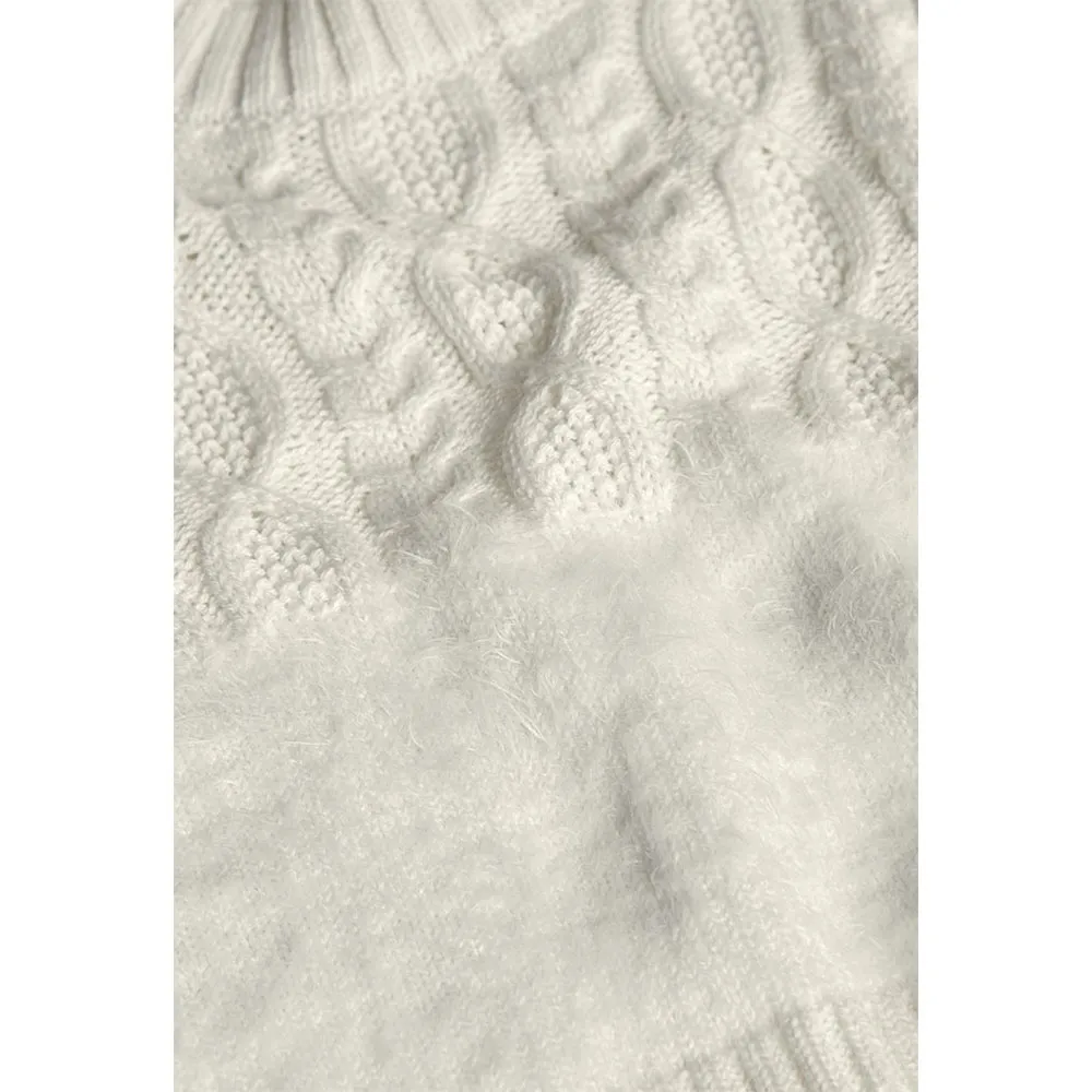 Hergestellt aus einem feinen Strickstoff, der Weichheit und Komfort gewährleistet, verfügt dieser Pullover über ein zartes Zopfmuster, das eine elegante Note verleiht.