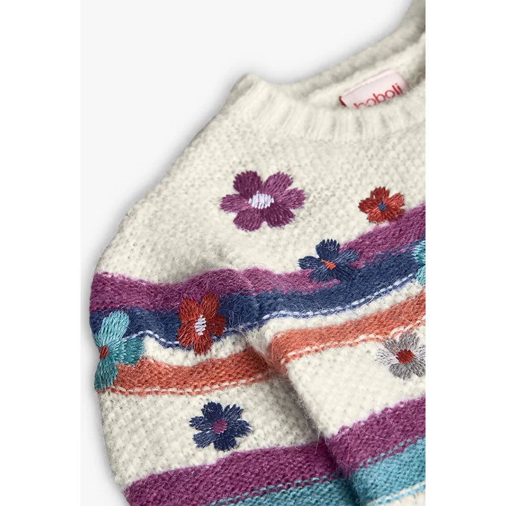 Weißer Strickpullover mit Blumen, unverzichtbar für Mädchen in der Herbst- und Wintersaison.