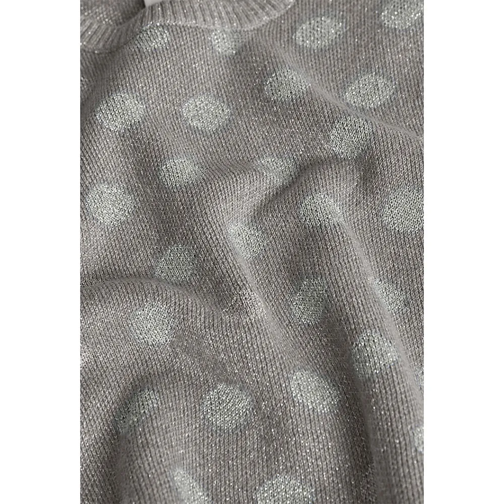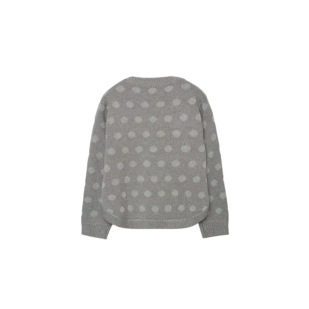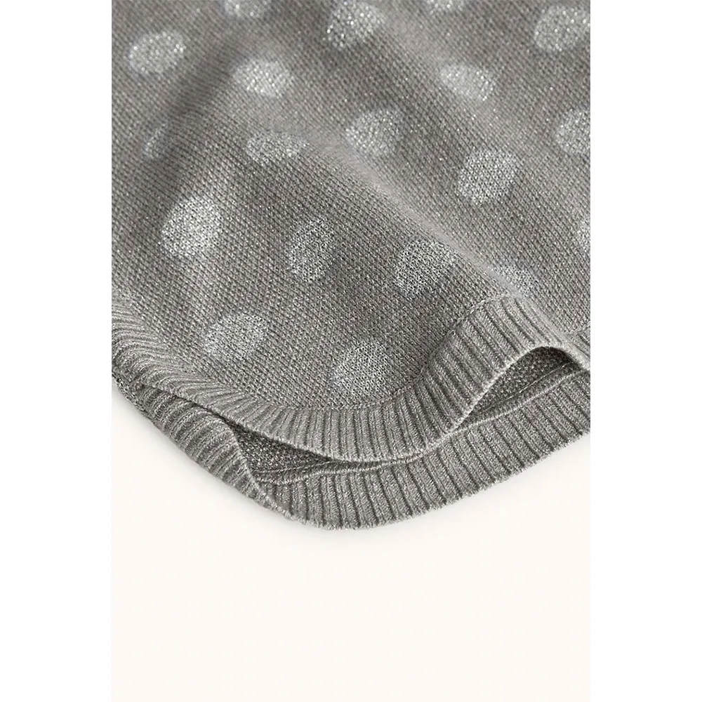 Grauer Strickpullover mit Tupfen für Mädchen ist aufgrund seiner Wärme und Weichheit perfekt für die Herbst- und Wintermonate.