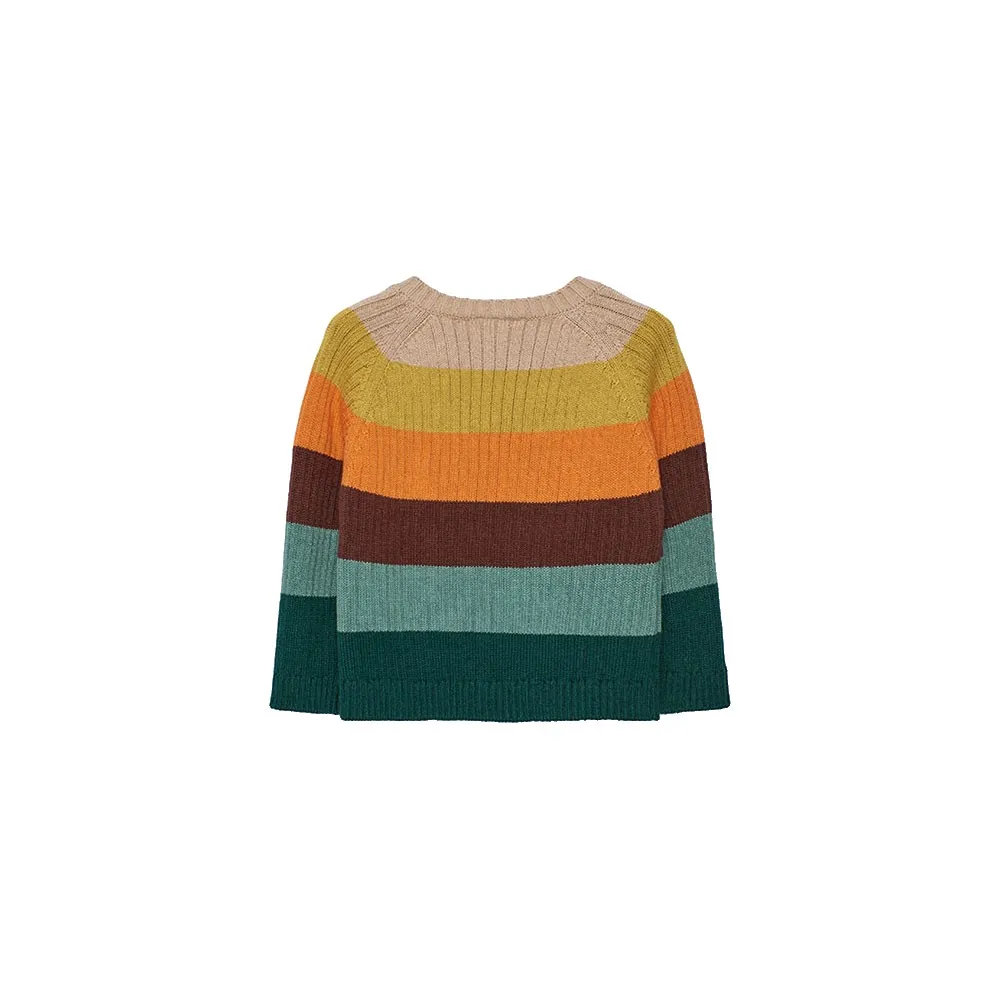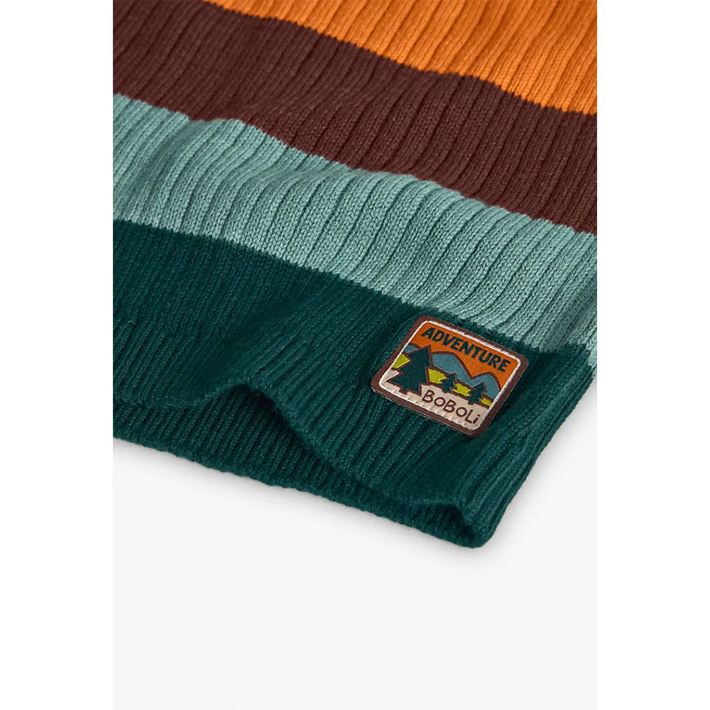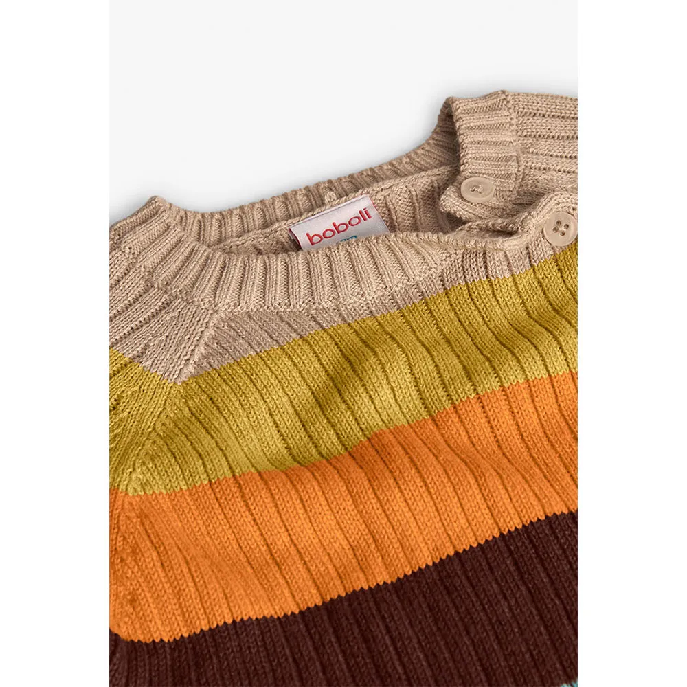 Gestrickter Jungenpullover mit Streifen in Beigetönen, ideal für die Herbst- und Wintersaison.