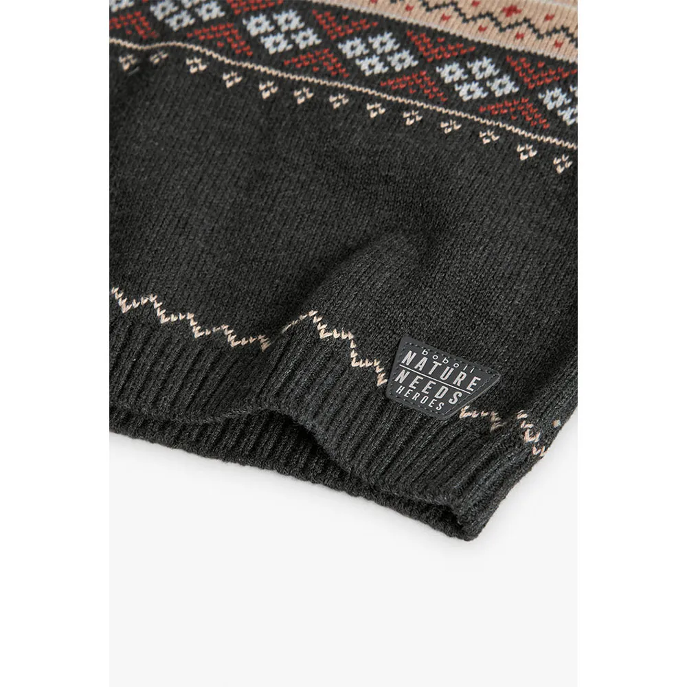 Grauer, geometrisch gestrickter Pullover für Jungen, ideal für den Winter, aus weichem und warmem Material.