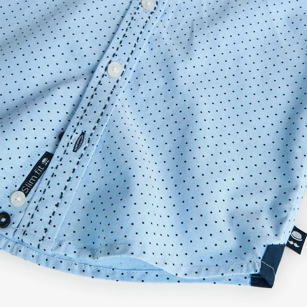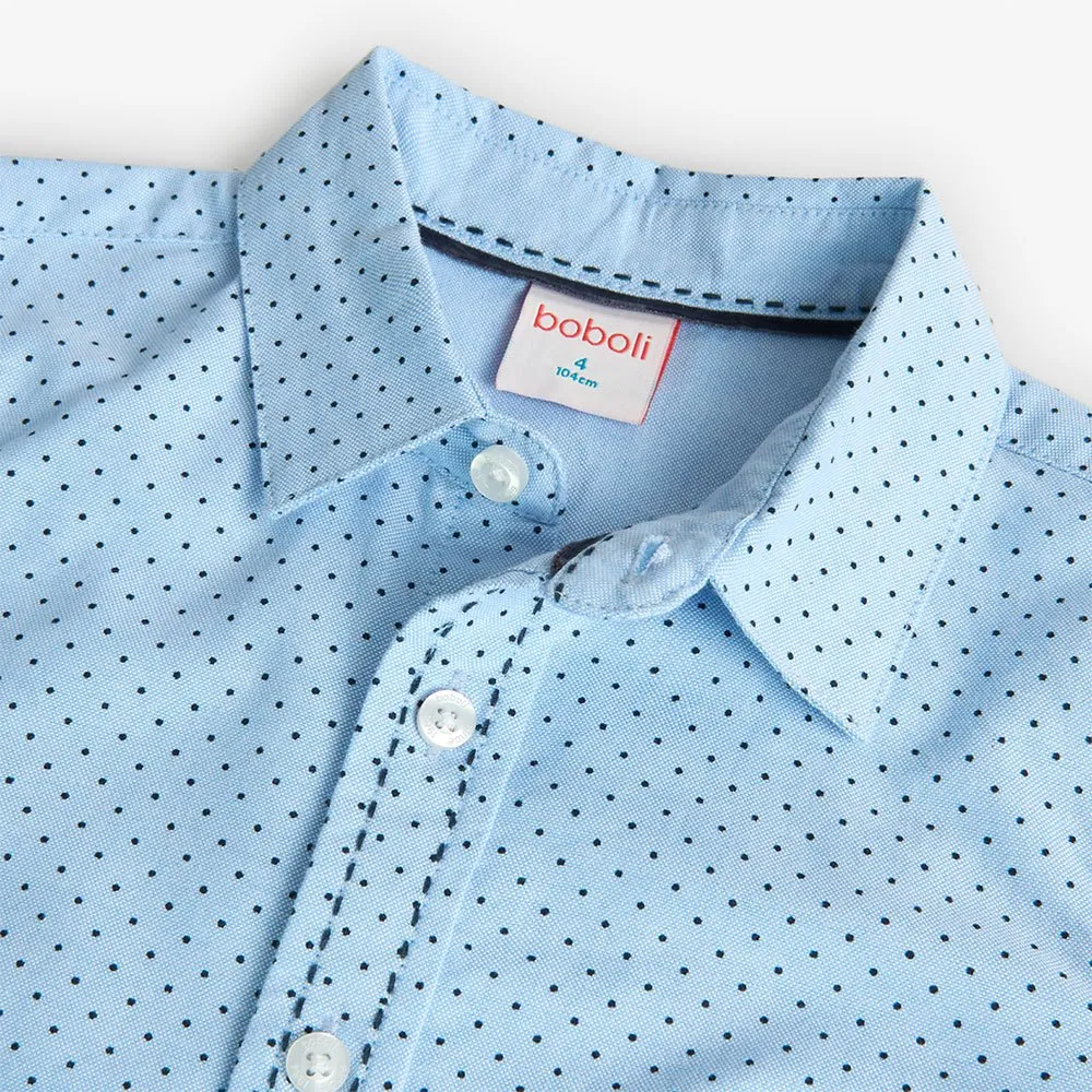 Dies ist ein Oxford-Hemd für Jungen mit einem Polka-Dot-Design.