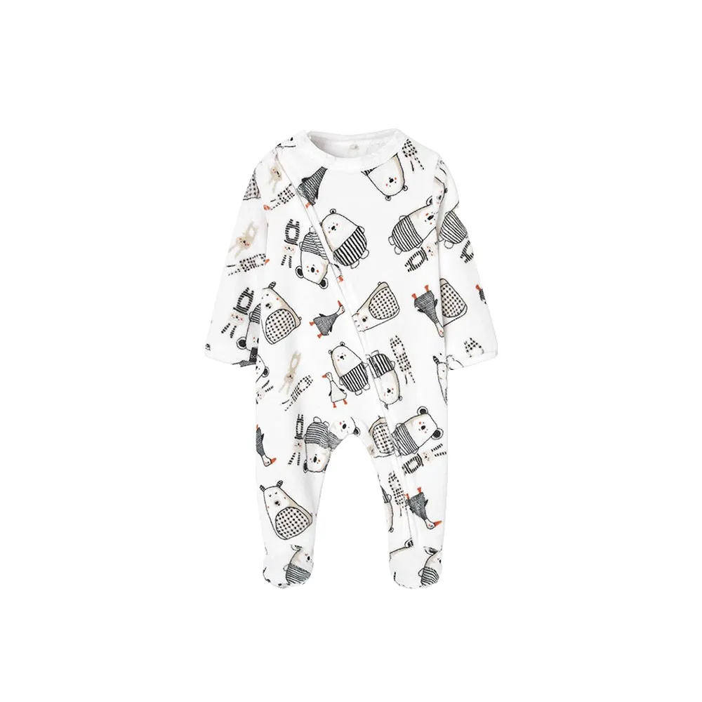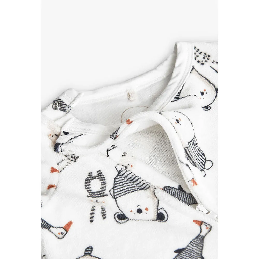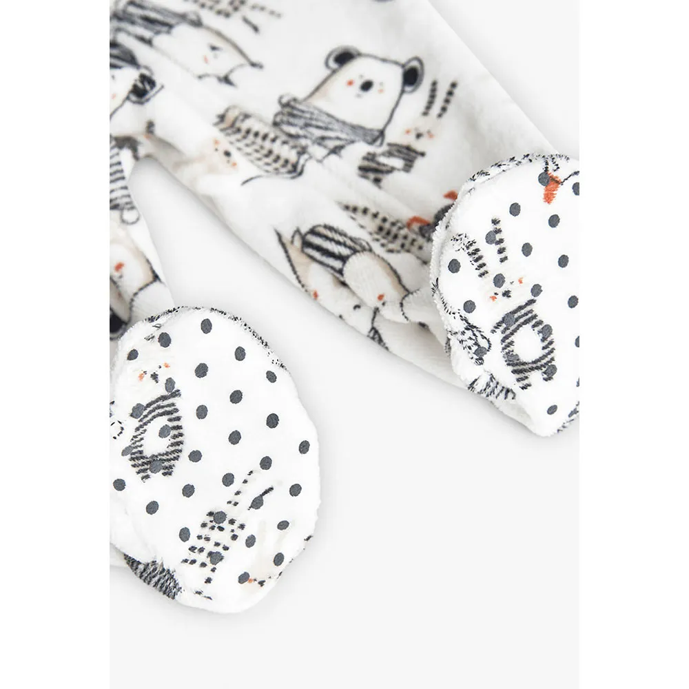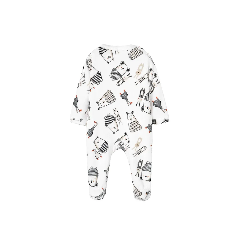 Gestrickter Babyschlafanzug in Weiß mit einem bezaubernden Tiermuster, das die Kleinen begeistert.