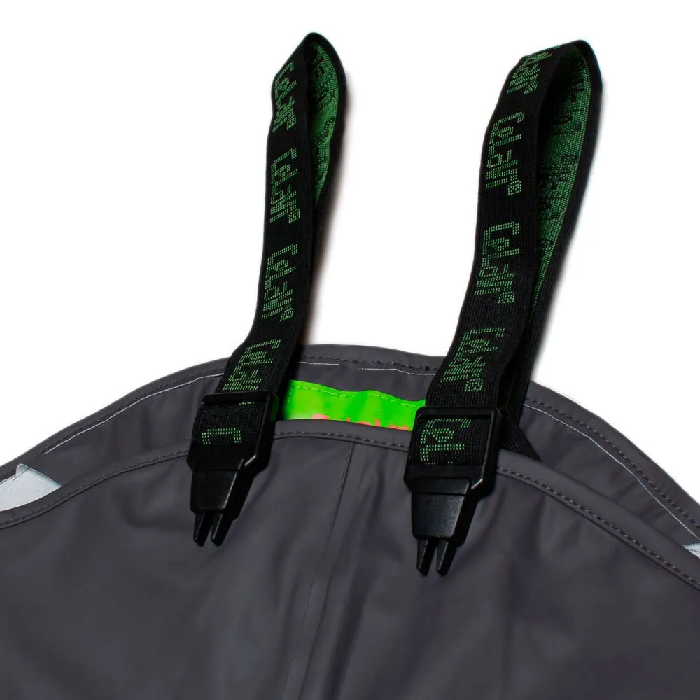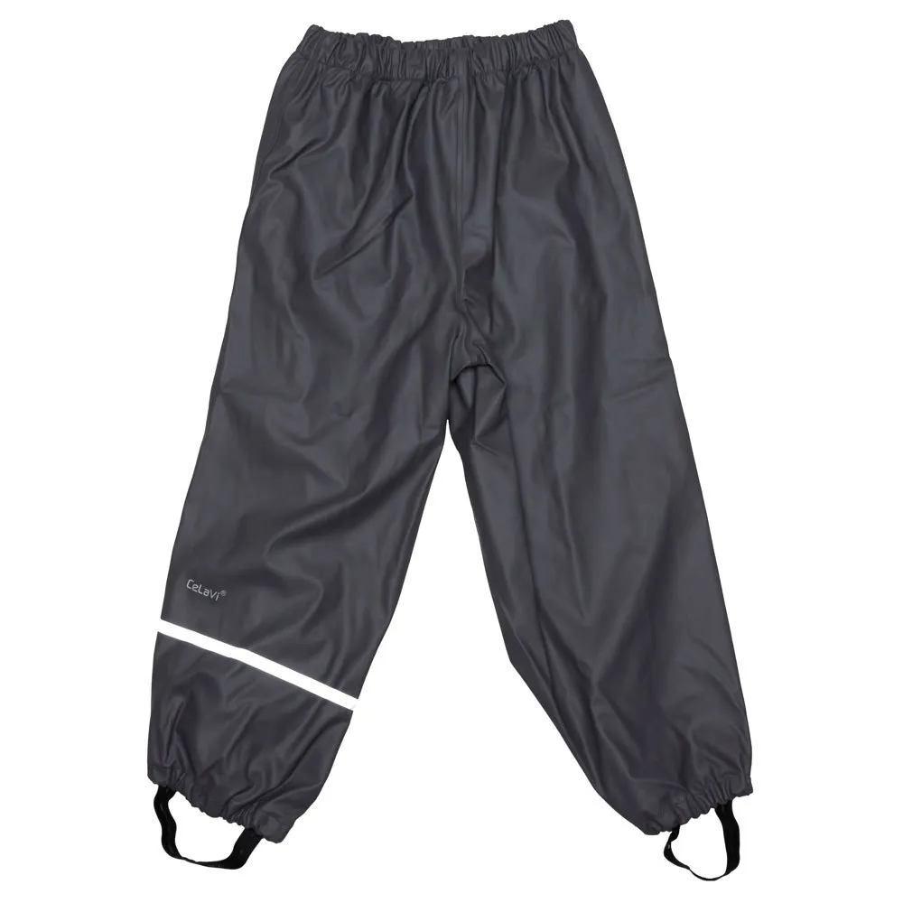 In Größe 110-150, in einigen Farben jedoch bis 170, werden die Regenhosen mit elastischem Bund (Größe 110-140) und nur dem celavi-Logo auf der Brust und am Bein geliefert.