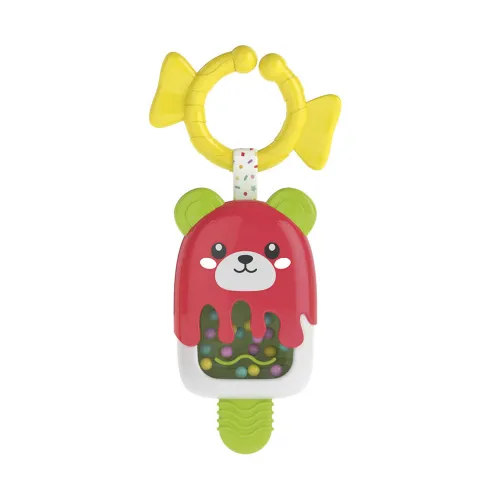 Diese entzückende, eiscremeförmige Rassel wurde sorgfältig gefertigt, um die wachsende Neugier Ihres Babys zu stimulieren. Ihre lebendigen, fröhlichen Farben sind darauf ausgelegt, die visuelle Aufmerksamkeit Ihres Babys zu fesseln und zu halten, wodurch Konzentration und Erkennung gefördert werden. Mehr als nur ein visueller Genuss ist die Rassel ein multisensorisches Erlebnis. Die kleinen Kugeln im Inneren ziehen die Aufmerksamkeit des Kindes auf sich, indem sie beim Schütteln den klassischen Rasselklang erzeugen. Dieser sanfte, angenehme Klang hilft Ihrem Baby, das Konzept von Ursache und Wirkung zu verstehen – ein grundlegender kognitiver Meilenstein –, da es lernt, dass seine eigenen Handlungen eine Reaktion hervorrufen können.