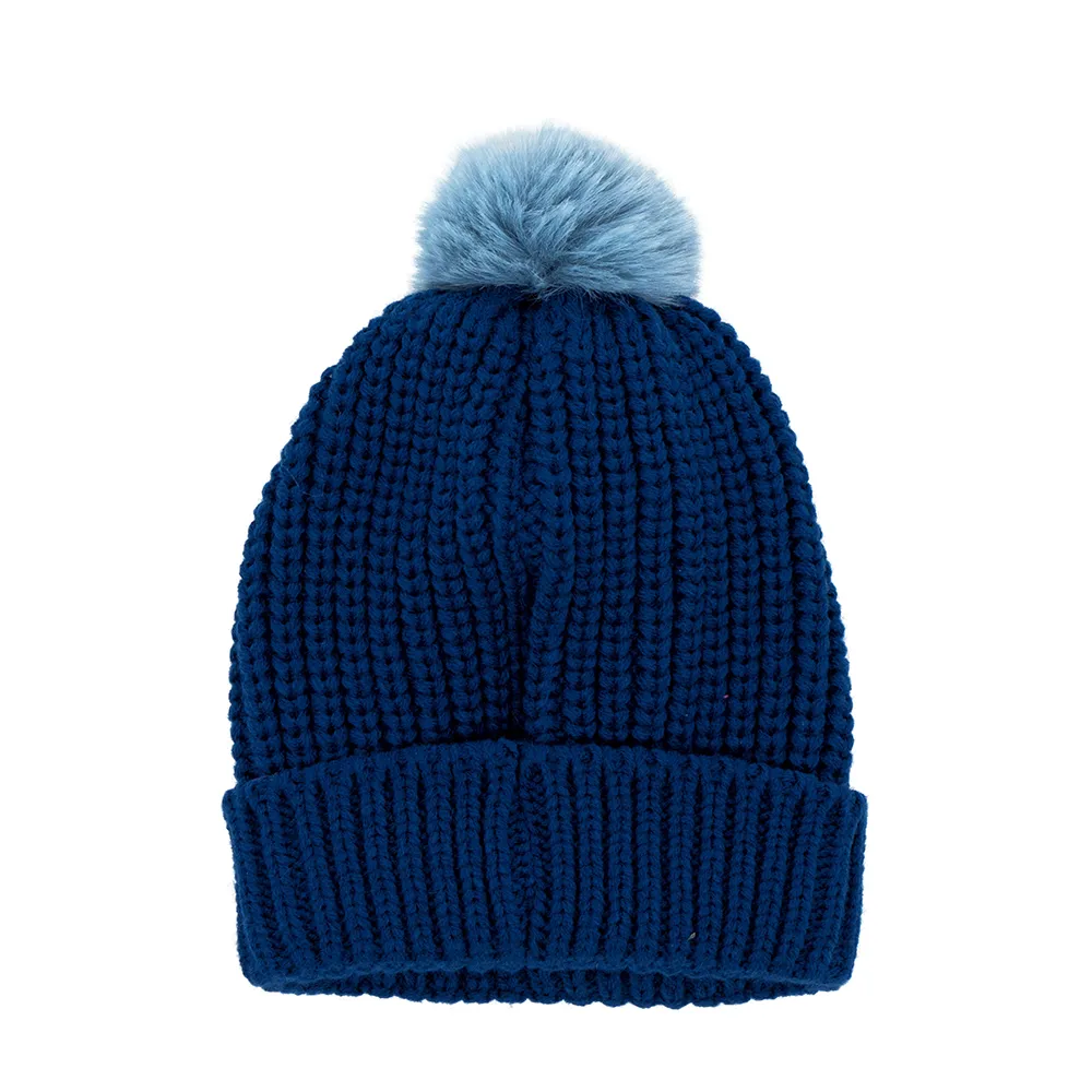 Mit gestickter Applikation und Fellbommel.
