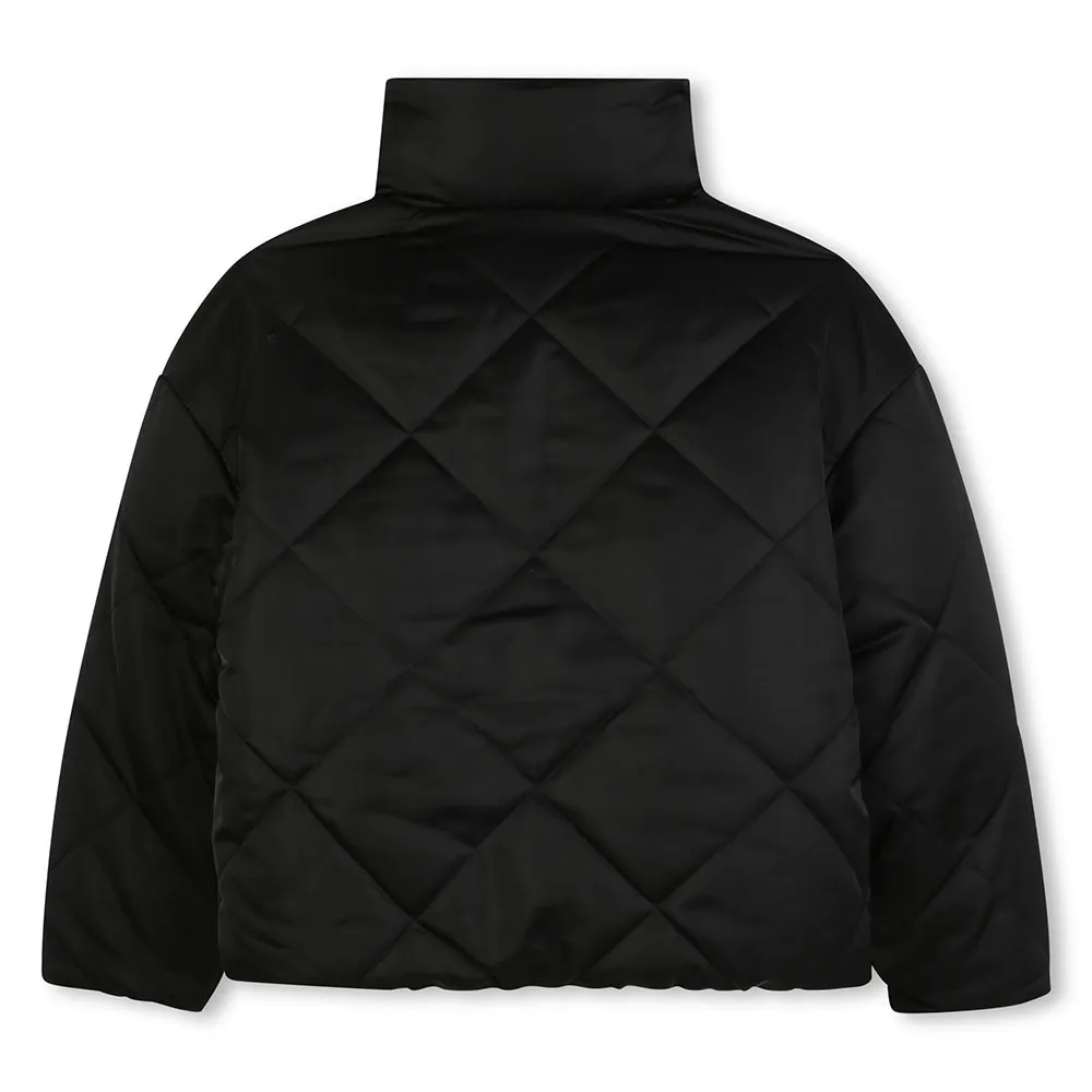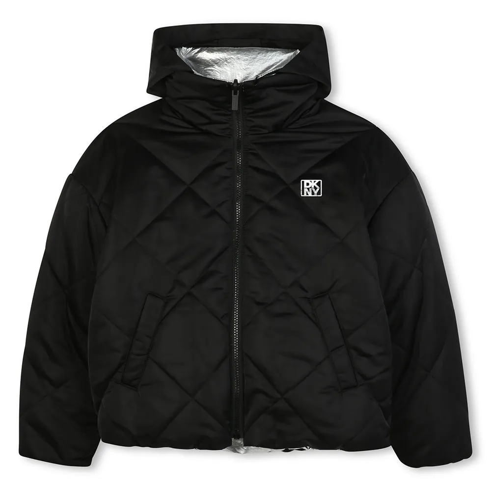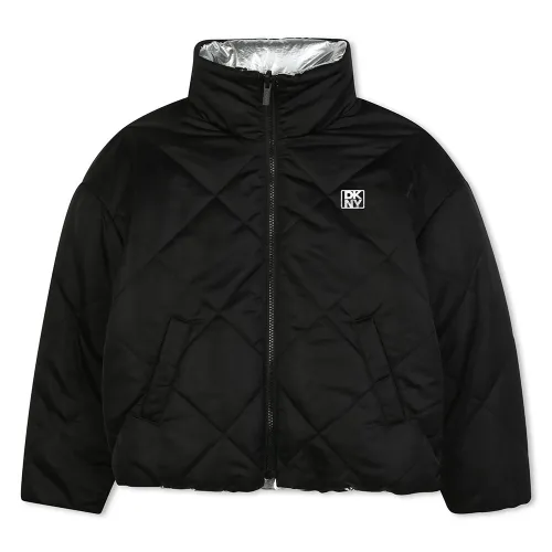 Wendbare, wasserabweisende, wattierte Jacke mit Reißverschluss und Kapuze im Kragen.