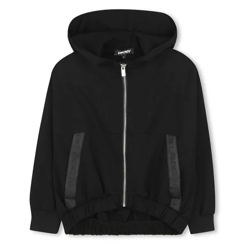 DKNY D62385 Mädchen-Kapuzenstrickjacke mit durchgehendem Reißverschluss