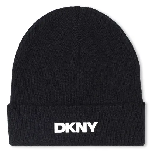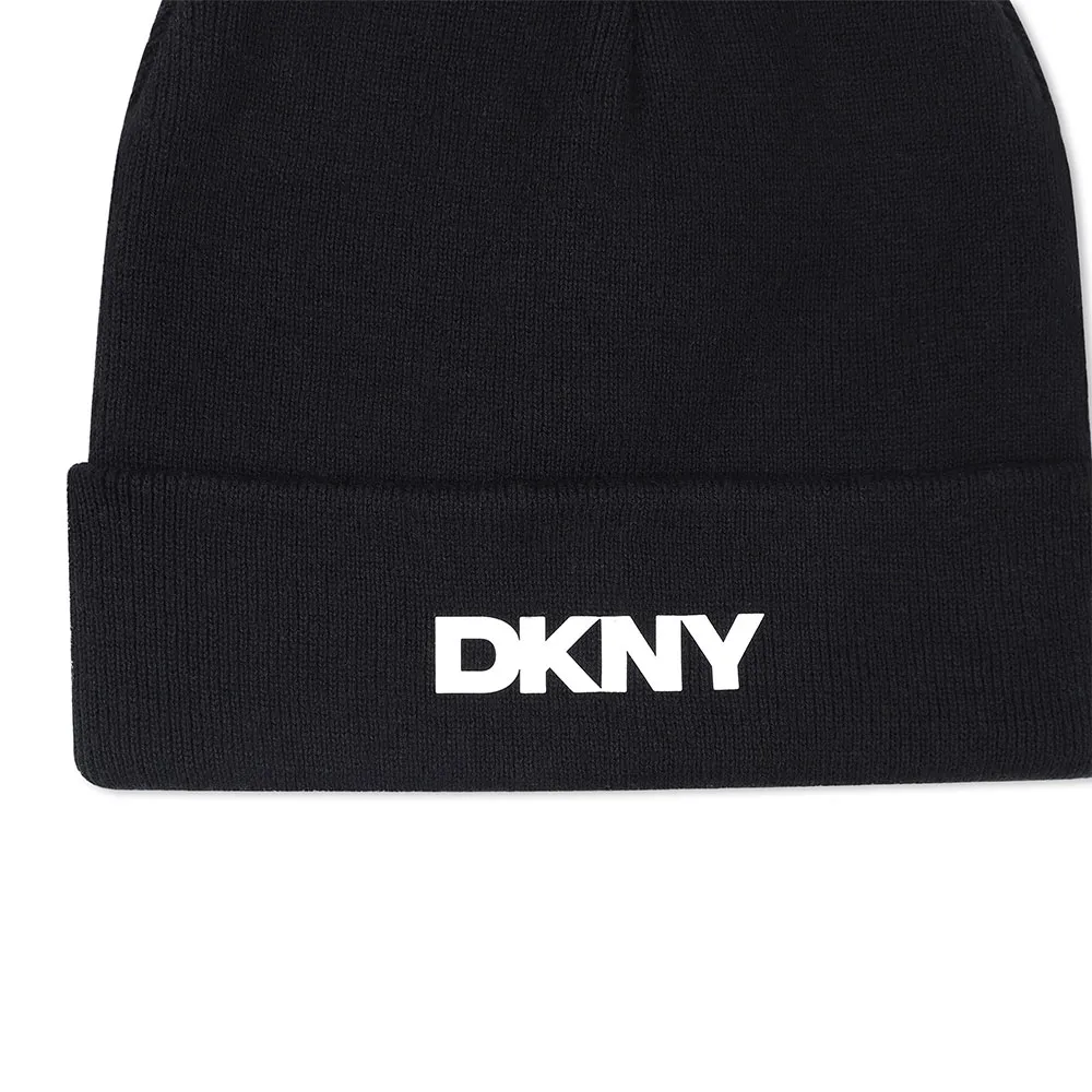 Ein markanter Marken-Gummidruck ist elegant auf dem Umschlag platziert und bietet eine moderne und minimalistische Interpretation des Brandings. Dieses subtile und doch selbstbewusste Detail dient als Gütesiegel für Qualität und authentisches DKNY-Design und verleiht einen Hauch von zeitgenössischer Raffinesse, der sie von gewöhnlichen Wintermützen unterscheidet. Die glatte, gummierte Oberfläche bietet einen textuellen Kontrast zum weichen Strick und unterstreicht das Engagement für hochwertige Verarbeitung und zukunftsweisende Mode.