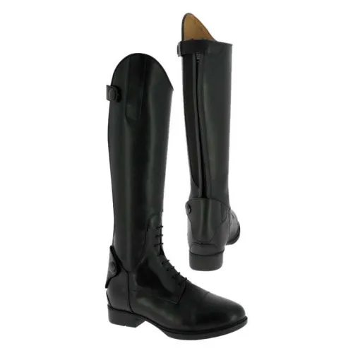Von der ersten Reitstunde bis zur ersten Show vermitteln diese Stiefel Selbstvertrauen. Die geschmeidige Lederkonstruktion passt sich dem Bein des Reiters an und fördert eine korrekte und stabile Beinhaltung, während das durchdachte Design den ganzen Tag über Komfort gewährleistet, egal ob im Steigbügel oder am Boden. Die klassische Feldstiefel-Ästhetik mit eleganten Details sorgt dafür, dass Ihr junger Reiter optimal aussieht und sich wohlfühlt.