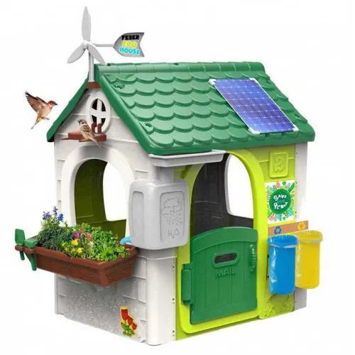 2 Wertstofftonnen, Urban Gardening und Werkzeuge, Regenwasser, Windmühle, imitiertes Solarpanel, Nest und Vogelhäuschen.