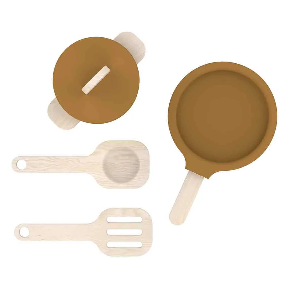 Mit diesen naturbelassenen Holzspielzeugen ermutigen Sie Ihr Kind, jede Rolle zu übernehmen, vom Spiegeleierbraten zum Frühstück bis zum Wasserkochen für das Abendessen des Teddybären.