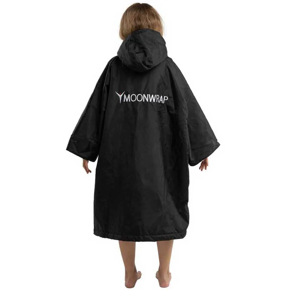 Das Moonwrap ist ein wahrer Segen, wenn es darum geht, draußen warm zu bleiben. Egal, ob Sie nass oder trocken sind, das Moonwrap wird Sie bald aufwärmen. Wir haben das Moonwrap entwickelt, um diese schlammigen, nassen, sandigen Tage mit hochwertigen, langlebigen Materialien zu überstehen. Es ist auch super einfach zu waschen und abzuwischen. Im Inneren des Moonwrap befindet sich eine große, wasserdichte Reißverschlusstasche. Dies kann nützlich sein, um Gegenstände zu verstauen, wenn Sie herumlaufen, sich umziehen oder sich aufwärmen. Das Moonwrap hat auch zwei extra große externe Taschen, die mit Fleece gefüttert sind. Diese sind beide verschließbar, um Ihre Hände warm zu halten oder Gegenstände beim Umziehen zu verstauen. Das Frostfire Moonwrap hat eine mit Fleece gefütterte Kapuze, um sicherzustellen, dass Sie beim Umziehen oder Tragen des Moonwrap warm bleiben. Es kann auch wie ein Handtuch verwendet werden, um Ihr Haar zu trocknen.